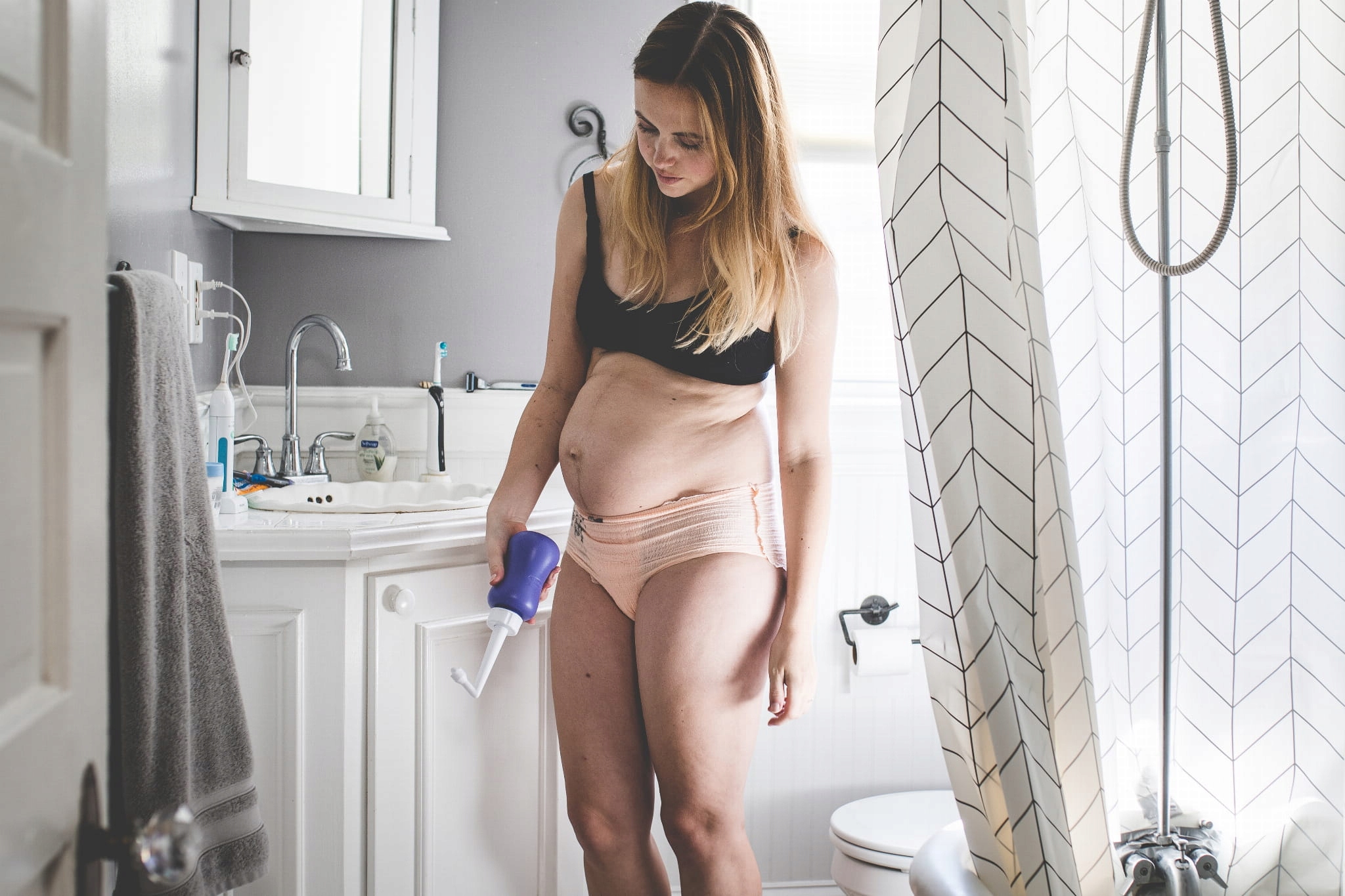 Флакон для ухода за промежностью после родов. Облегчает подмывание, обеспечивая комфортную гигиену интимных зон.