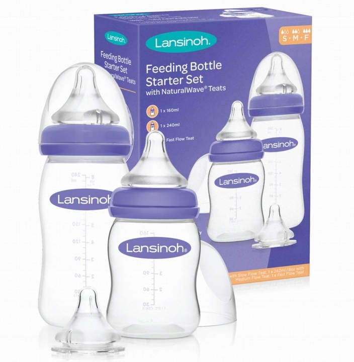 LANSINOH СТАРТОВИЙ НАБІР ПЛЯШОК 240мл + 160мл З ПУСТУШКАМИ S+M+F