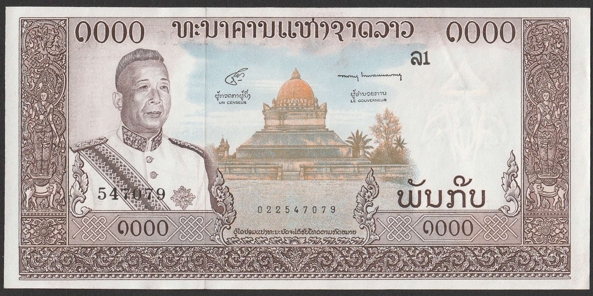 Laos 1000 kip 1963 - król Savang Vatthana - stan bankowy UNC