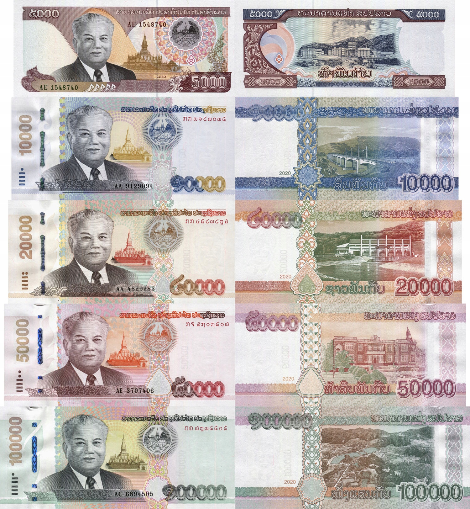 Laos 2020-22 zestaw 5 szt 5000+10000+20000+50000+100000 Kip - Pick new UNC