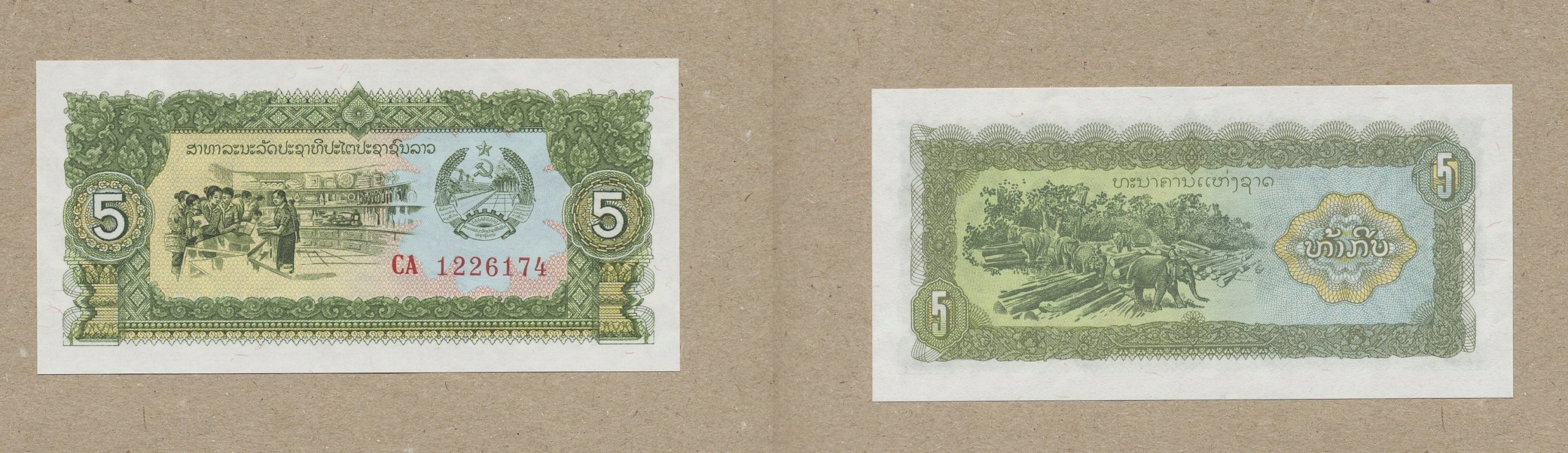 LAOS 5 KIP 1988 R. UNC P-26a.2