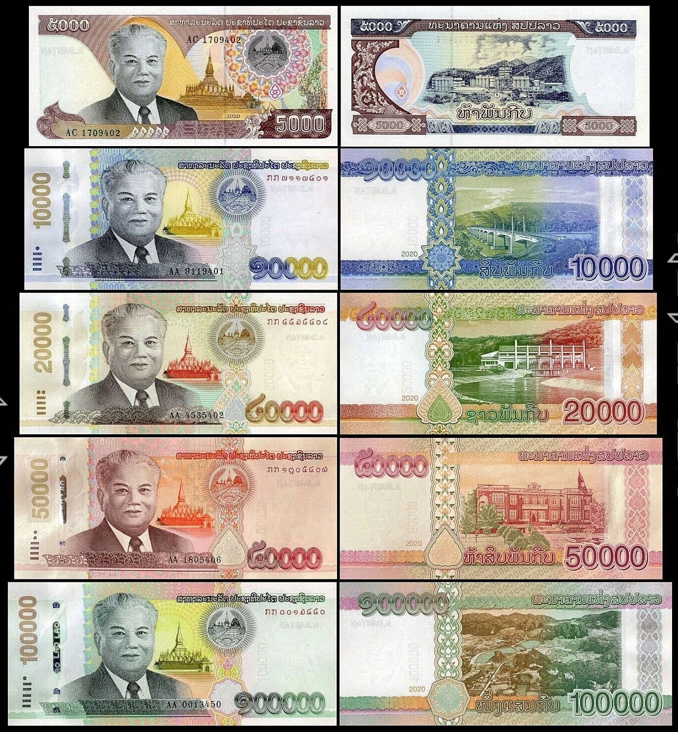 ПОЛНЫЙ КОМПЛЕКТ ЛАОСА 5000 + 10000 + 20000 + 50000 + 100000 кипов 2020 НОВЫЙ UNC