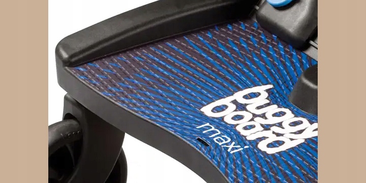 Большая поверхность платформы, покрытая противоскользящим материалом, и боковая защитная рамка обеспечивают комфорт и безопасность использования BuggyBoard Maxi.