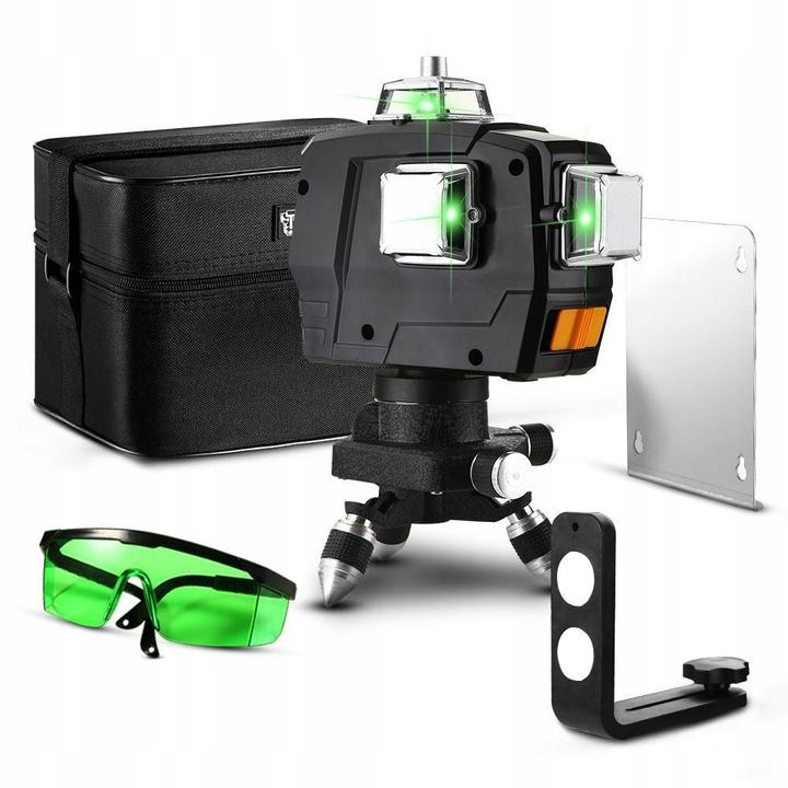 Лазер позволяет устанавливать уровни в трех плоскостях, отображая 12 линий зеленым. Лазер можно использовать в помещении и на открытом воздухе. Устройство имеет вместительную заряженную батарею с прикрепленным зарядным устройством.