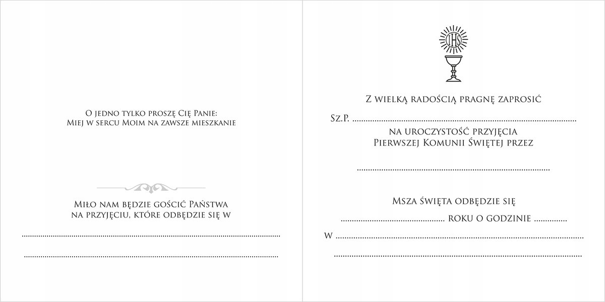 Эксклюзивное приглашение на Первое причастие, вырезанное лазером, с готовым текстом для написания от руки.