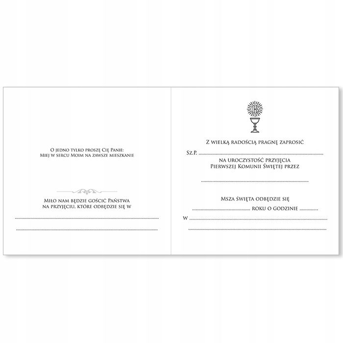 Эксклюзивное приглашение на Первое причастие, вырезанное лазером, с готовым текстом для написания от руки.