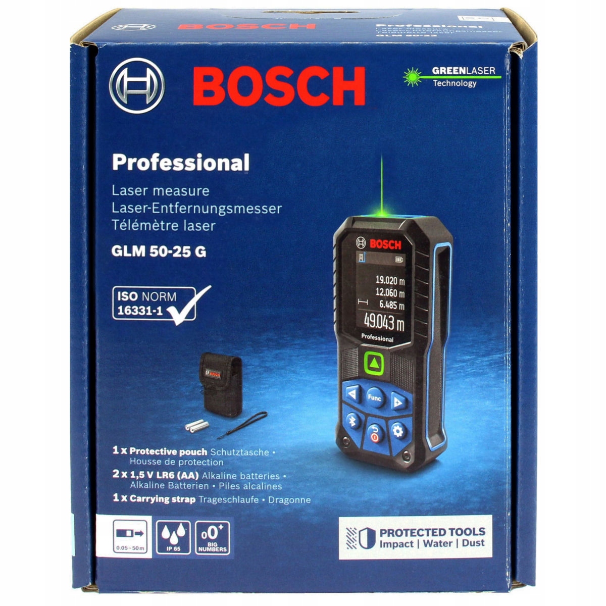 Лазерный дальномер GLM 50-25 G питается от двух аккумуляторов LR6 1,5 В, которые позволяют выполнить более 10 000 измерений.