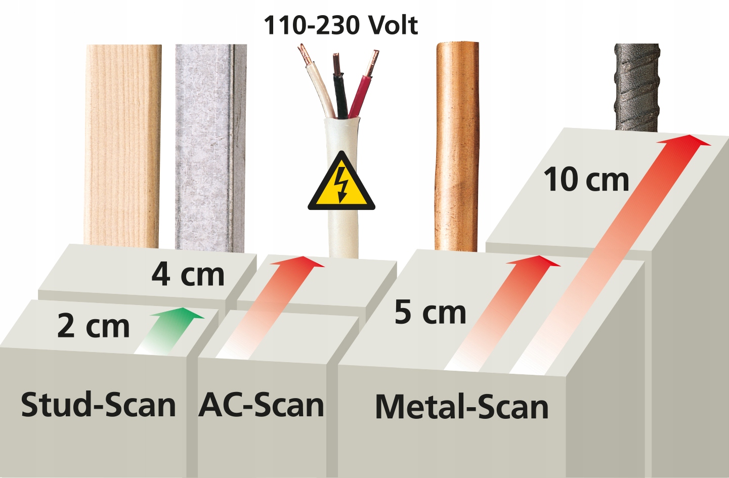 Multiffinder Plus Laserliner -это эффективное сканирующее устройство для обнаружения металлических и деревянных элементов , таких как стальные стержни, Медные трубы нагрева или водяные линии, нагрузки -BEAMS, балки, Профили и местоположение под напряжением . Автоматическая калибровка адаптирует устройство для работы на различных поверхностях сразу после начала