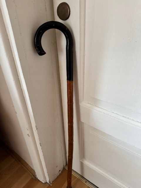 Laska drewniana vntage retro dla seniora brązowa antypoślizgowa PRL