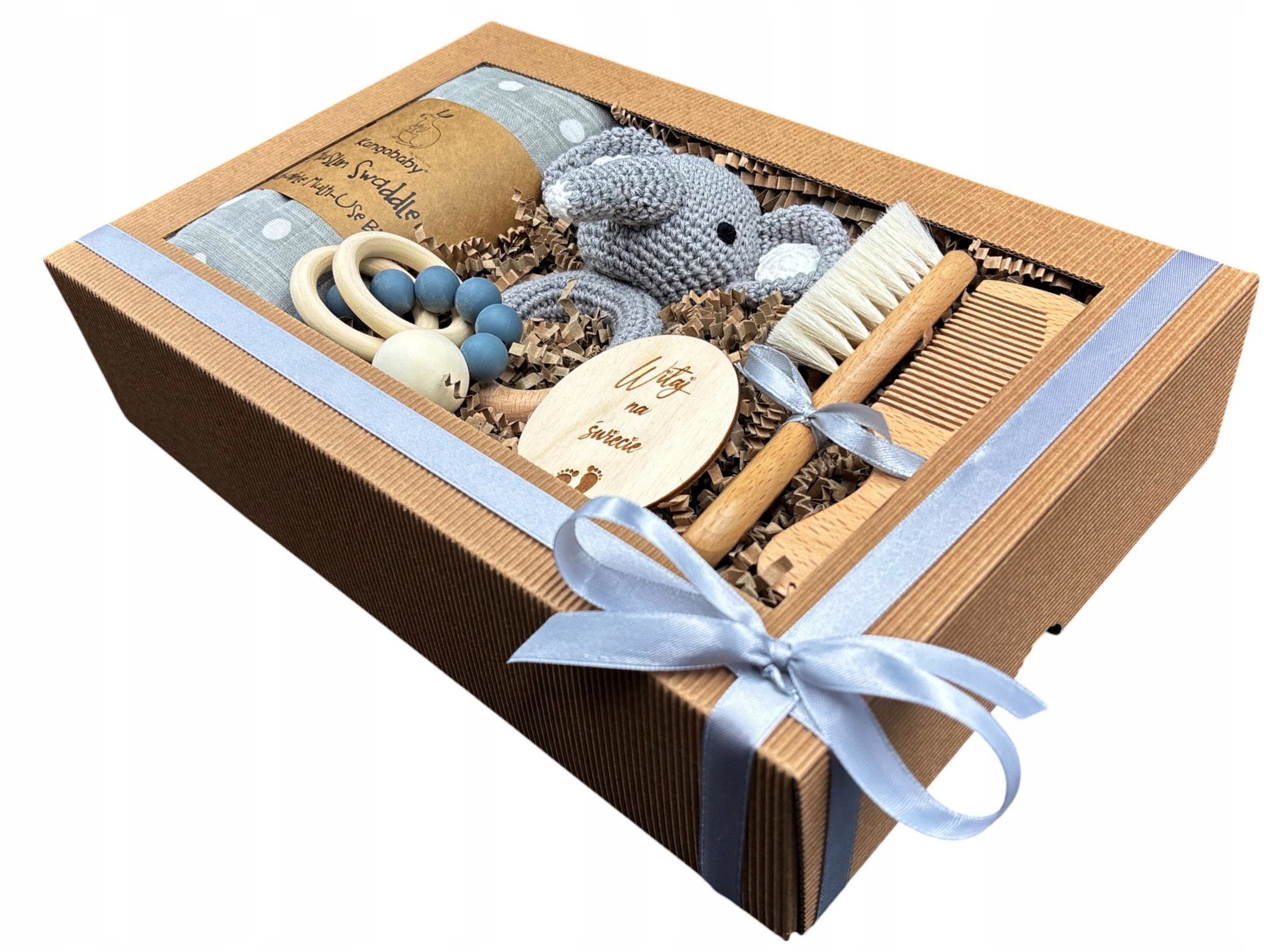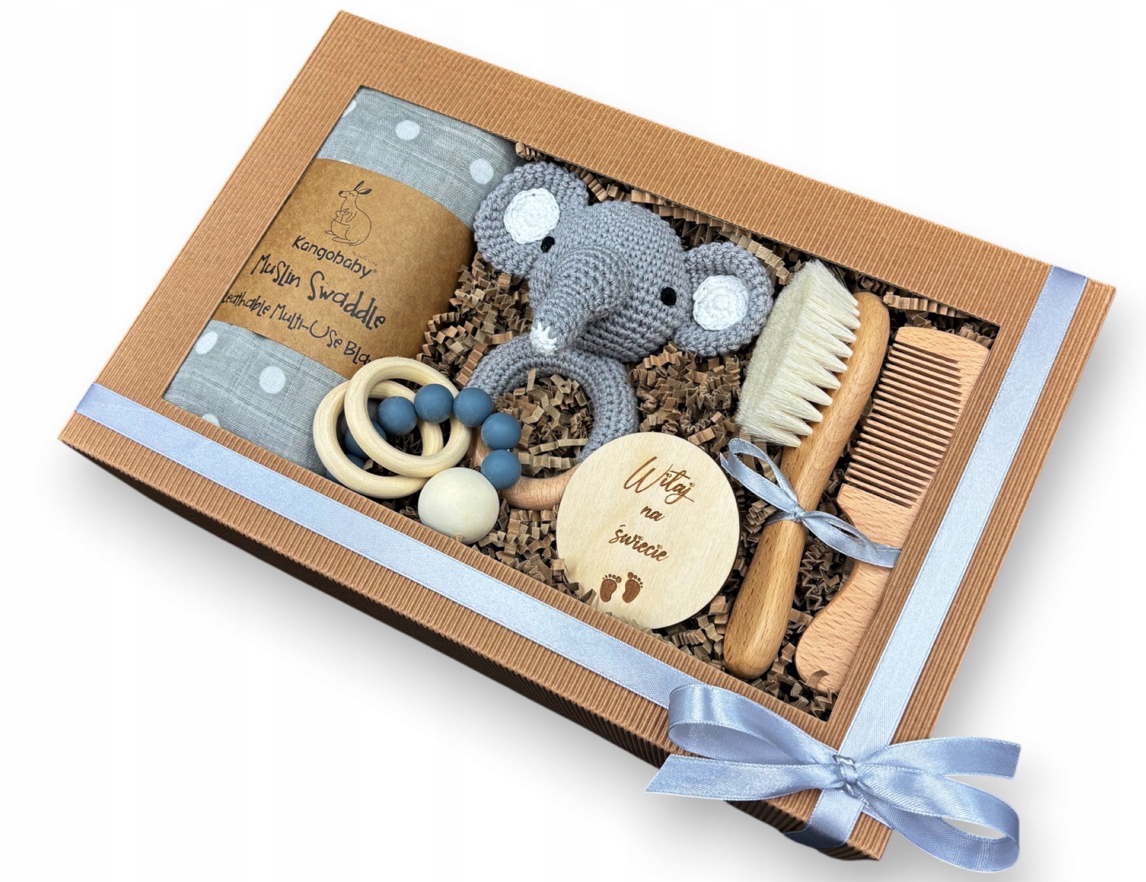 Все элементы набора являются присущими аксессуарами новорожденного. Они будут идеальными в качестве подарка для будущих родителей.