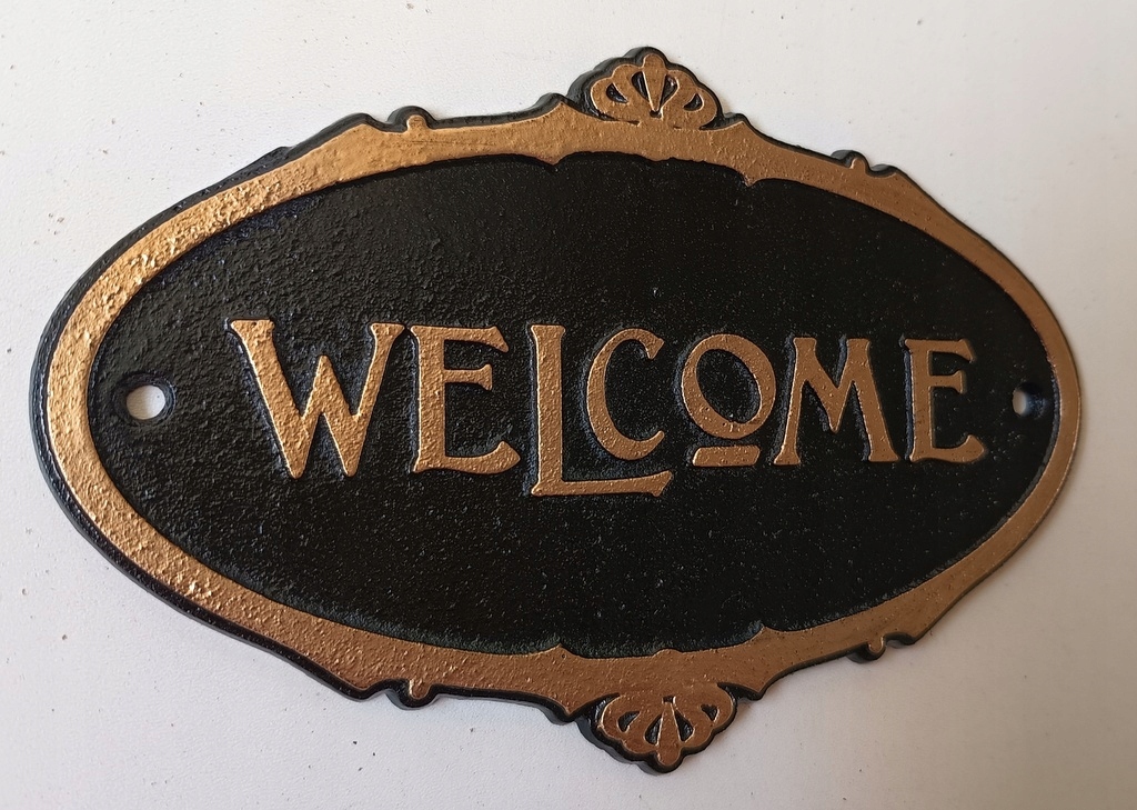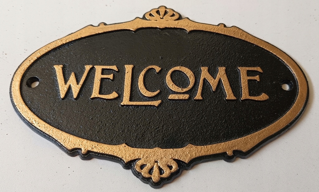 Предмет продажи – декоративная приветственная табличка. Создан сегодня из чугуна. Он украсит вас и сообщит доброе утро о том, что вас ждут, что является очень приятным жестом.