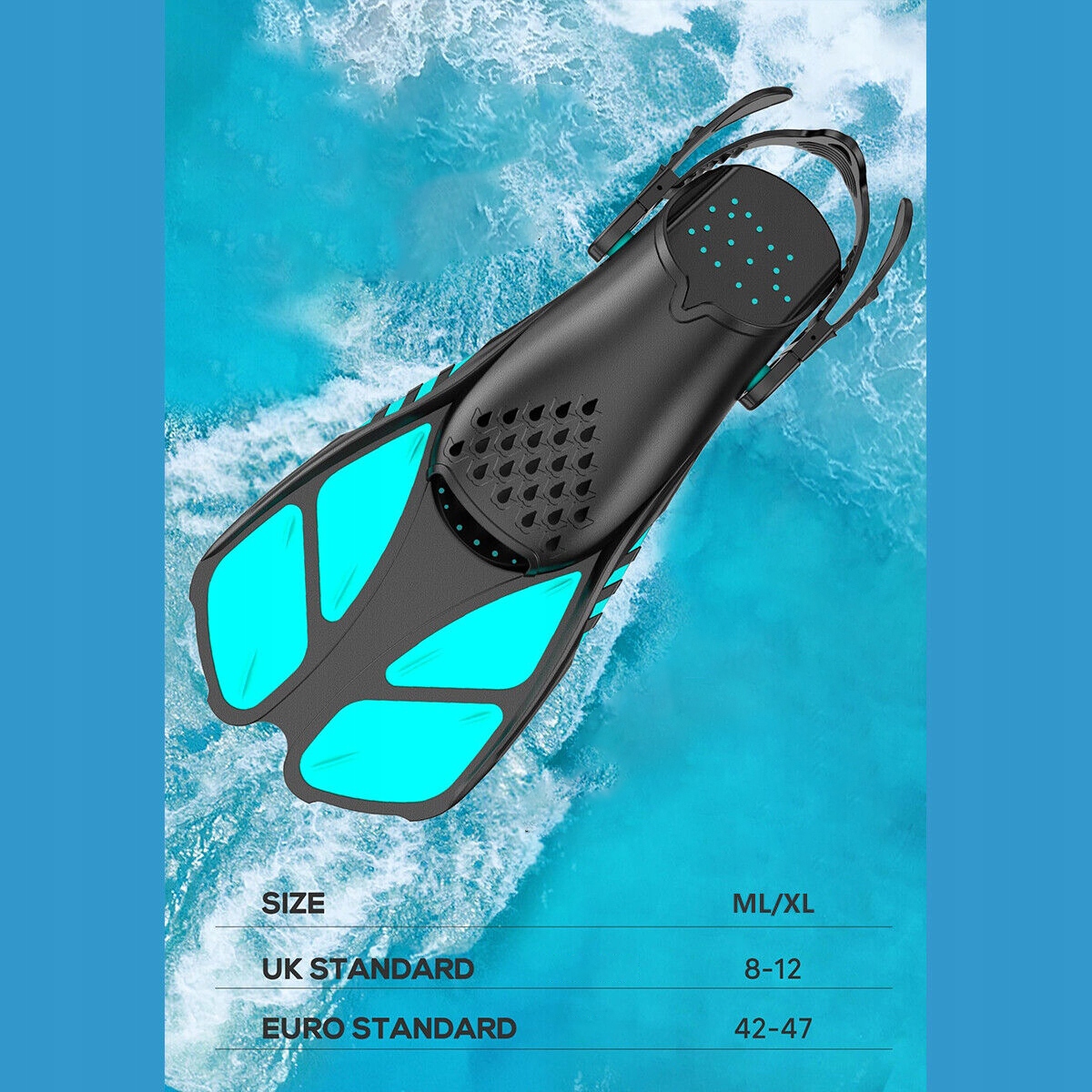 Прочные и дышащие ласты: высококачественные ласты с карманом для ног анатомической формы. Боковые ребра обеспечивают отличную амортизацию и устойчивость. Размеры: ML/XL № 42–47. Регулируемая система пряжек подходит для обуви разных размеров, поэтому вся семья может исследовать подводный мир.