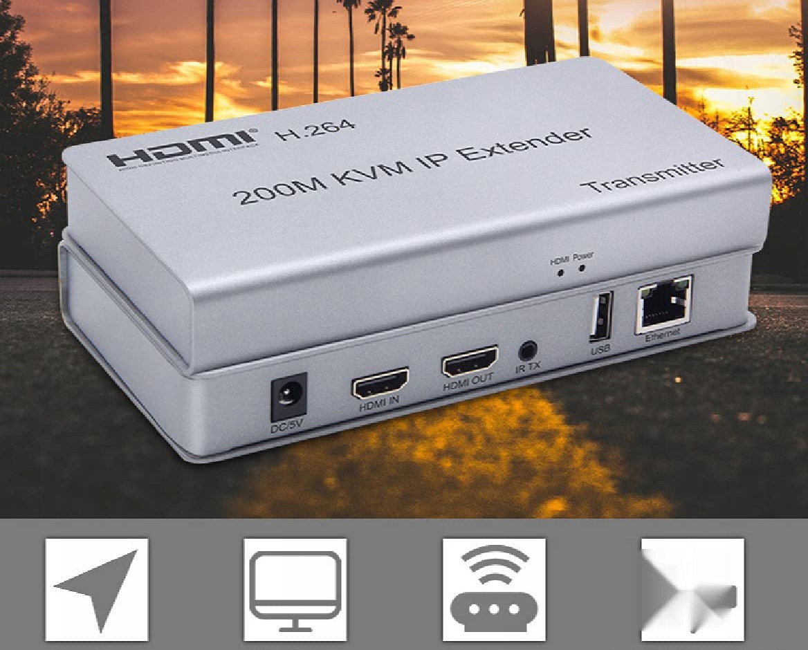 глотания H.264, KVM, HDMI, 200 м, 20 x 19 x 2,2 см.