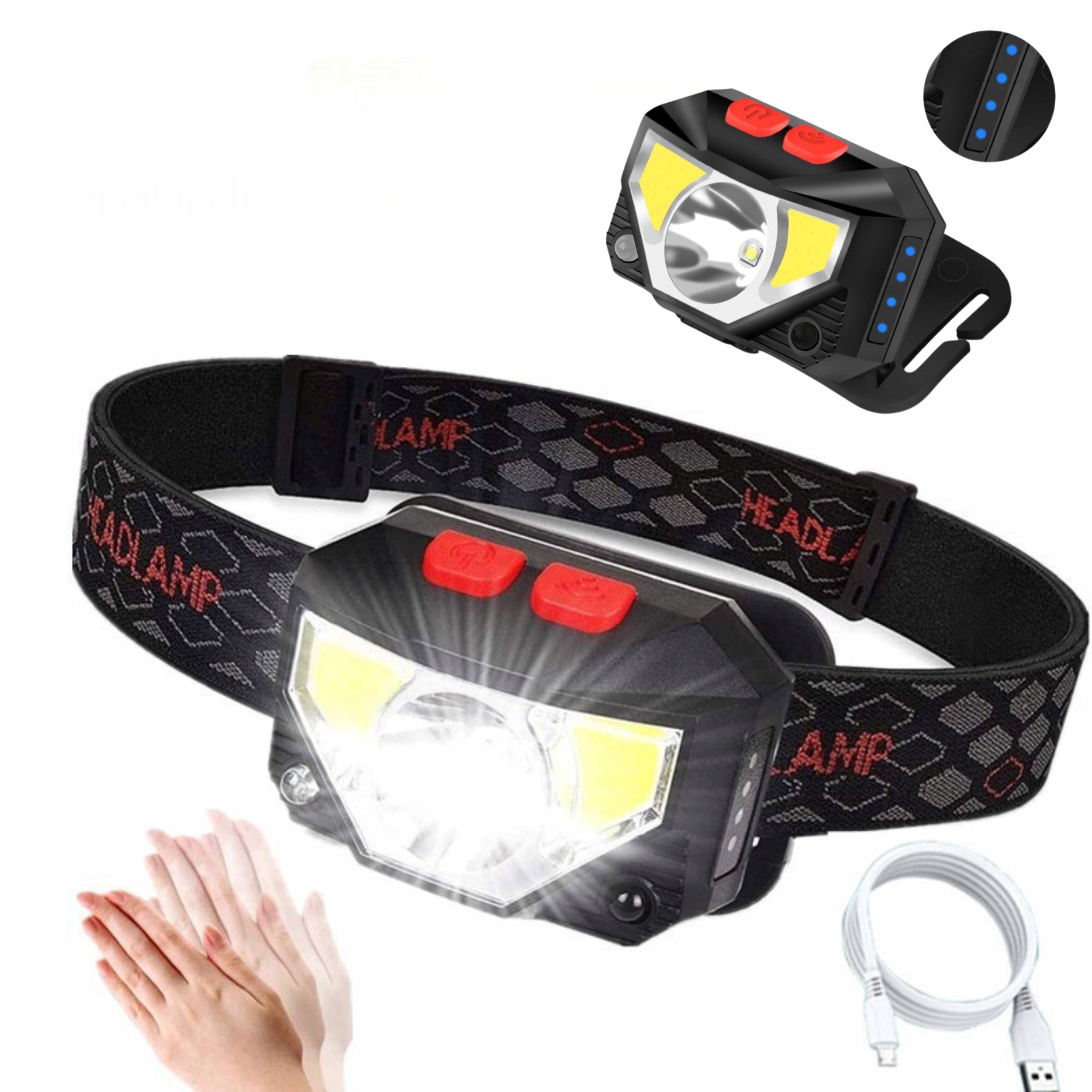 LATARKA CZOŁOWA AKUMULATOROWA LED CZOŁÓWKA LAMPKA NA GŁOWE CZUJNIK RUCHU