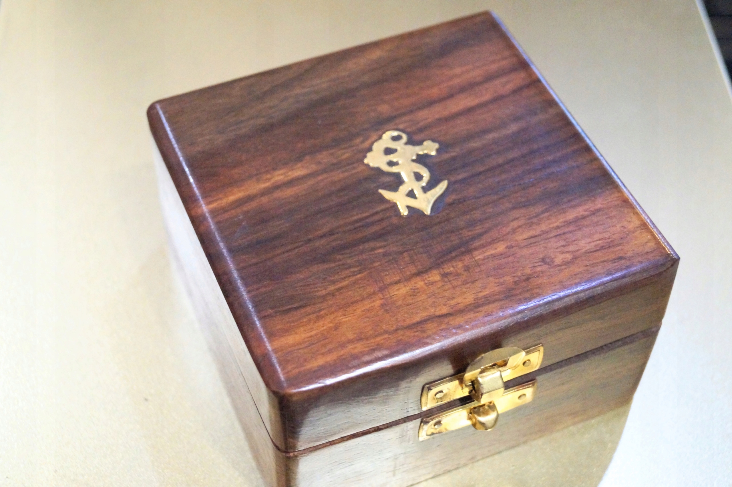 Красивый латунный военный компас с античной отделкой в шкатулке из розового дерева