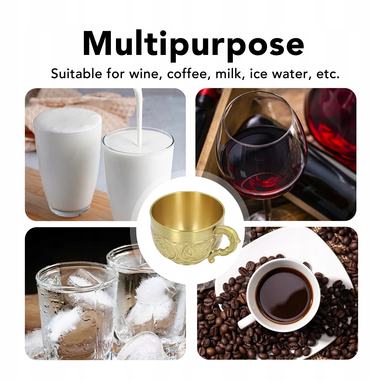 Применение: металлическая чашка имеет очень крутой дизайн, вы можете использовать его можно не только пить, но и поставить на стол, он станет отличным украшением. Латунную кофейную чашку с ручкой удобно держать без каких-либо дополнительных препятствий.