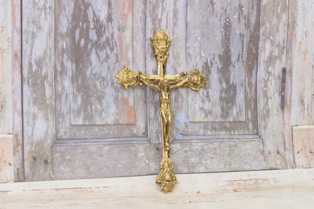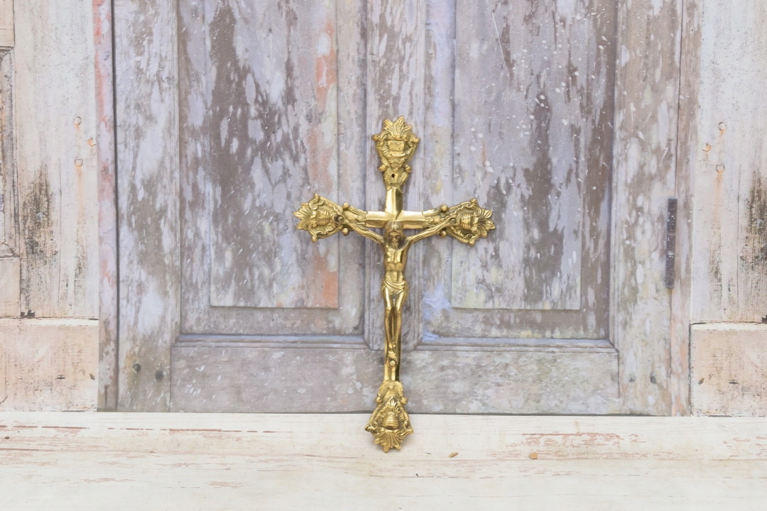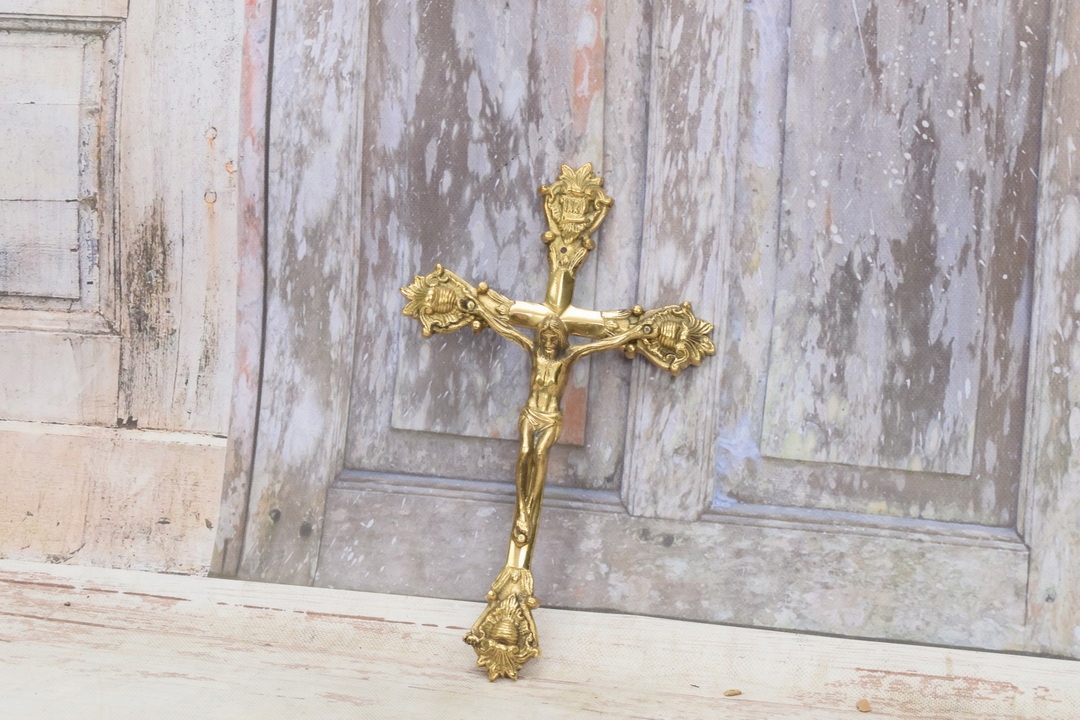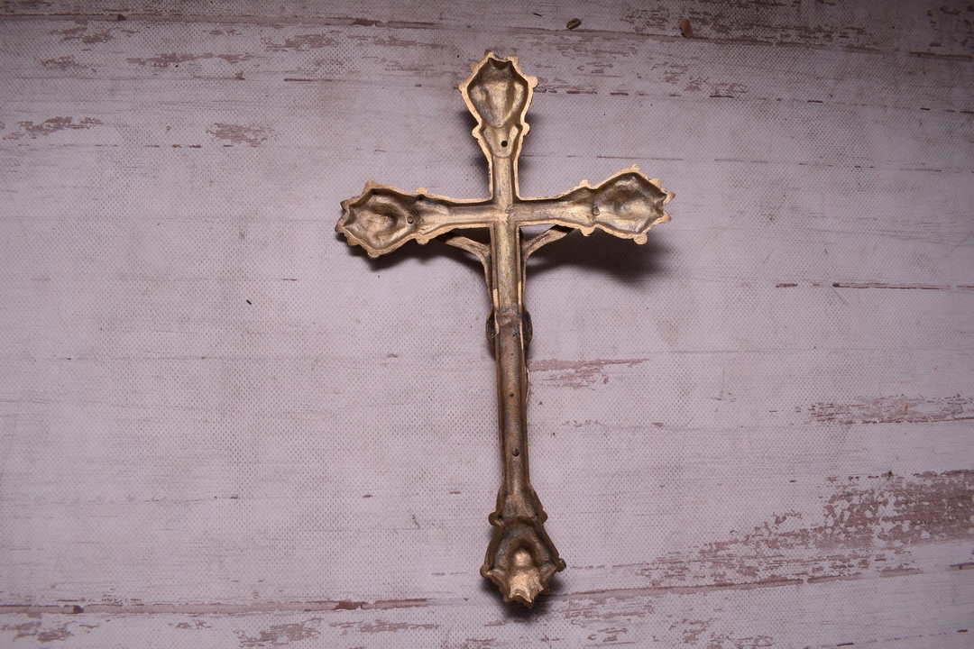 Медный крест на стене - Господь Иисус - фигура - медь