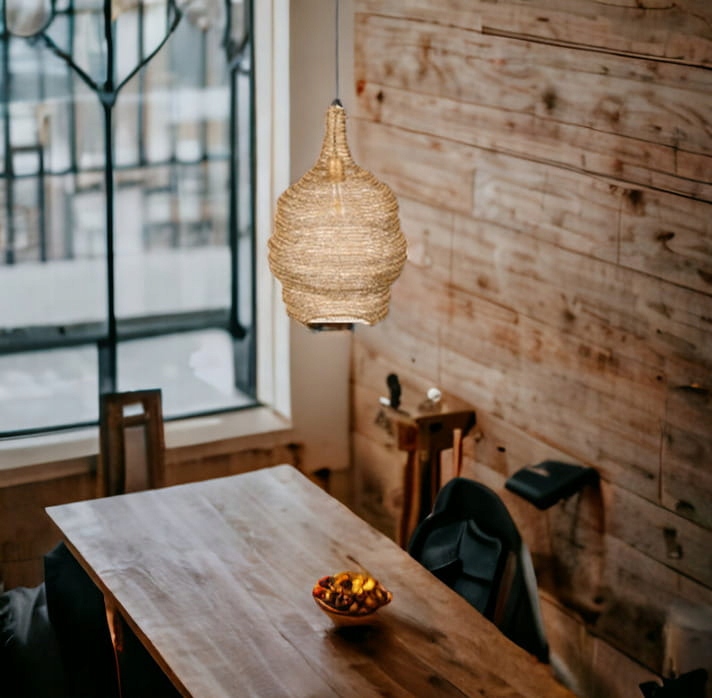 Лампа имеет абажур из металлической сетки с порошковым покрытием, что придает ей уникальный характер. Абажур крепится на черный ПВХ-кабель длиной 100 см, что позволяет гибко размещать светильник в нужном месте. Диаметр абажура 37 см, что обеспечивает достаточное освещение. Код производителя - 5300143.