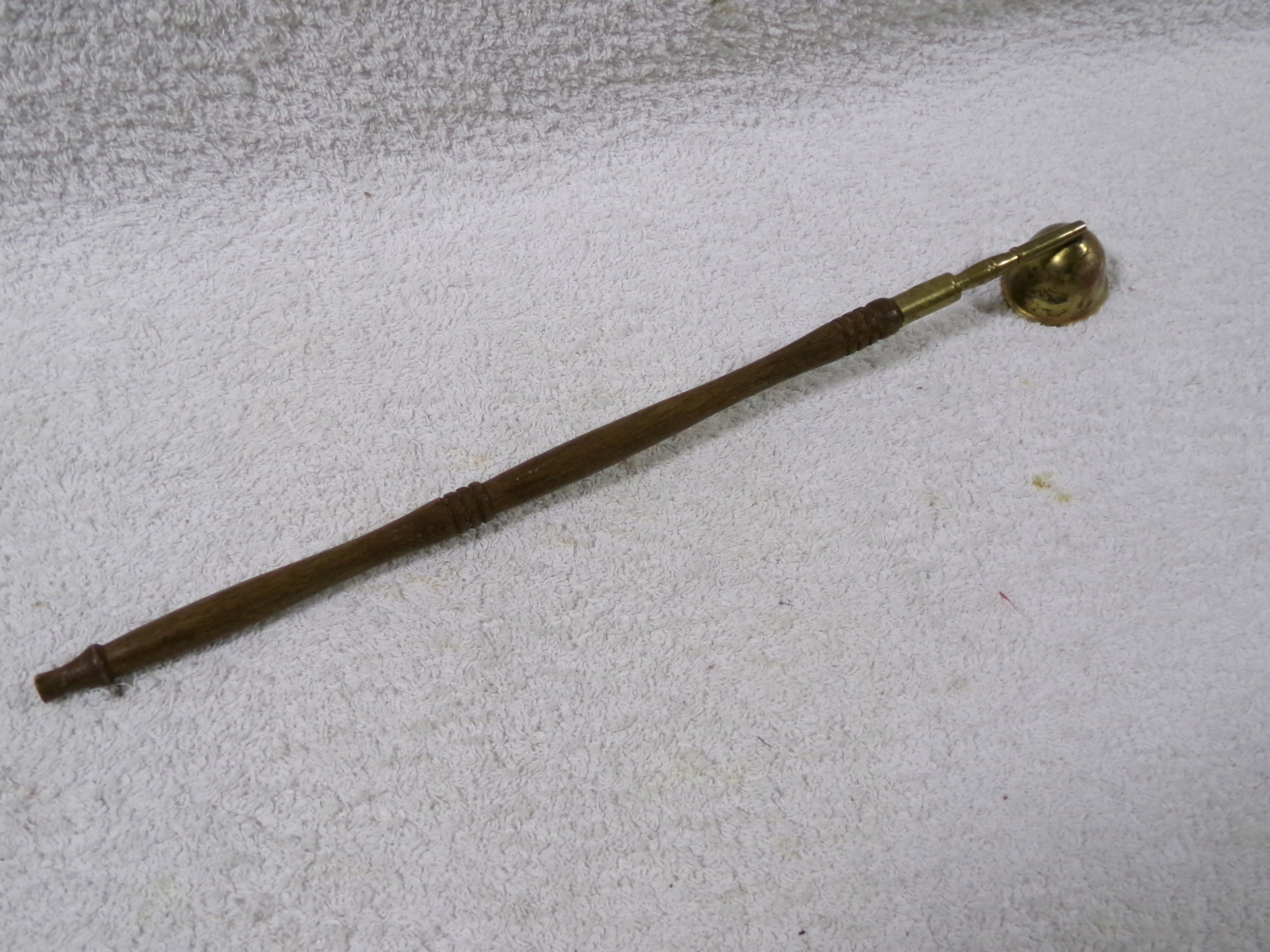 Огнетушитель латунный с деревянной ручкой, размеры 34,5х3,5 см, вес 44 грамма. Состояние хорошее, без повреждений, нормальные следы использования.