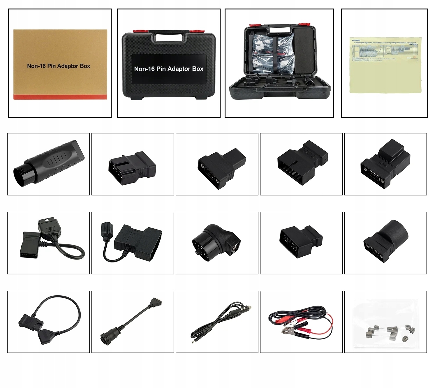 Тестер оснащен разъемом OBDII и 12 адаптерами OBDI для диагностики старых автомобилей:
