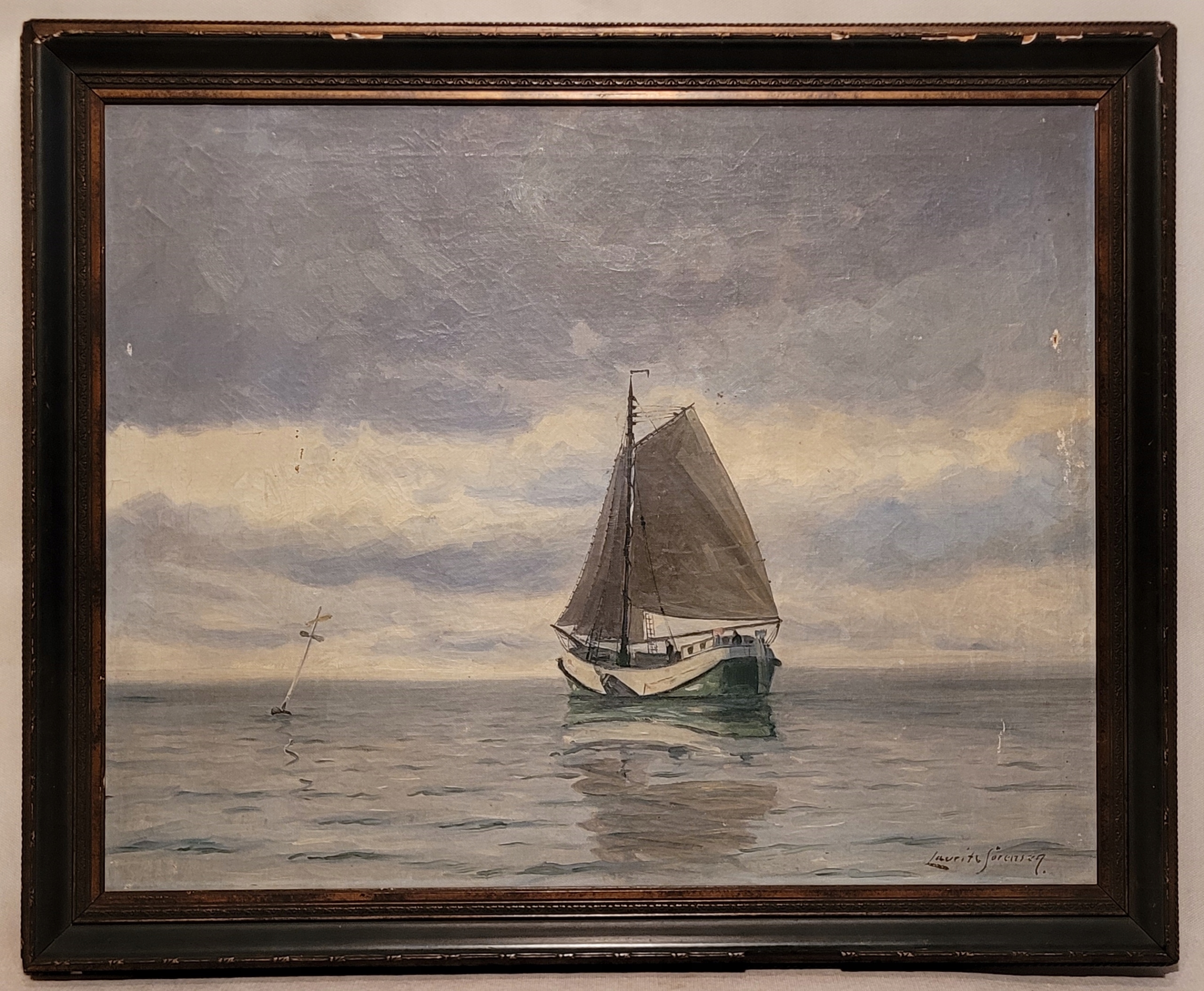 Лаурц Соренсен (1882 - 1968) - «Лодзи żaglowa», старая нефтяная картина.