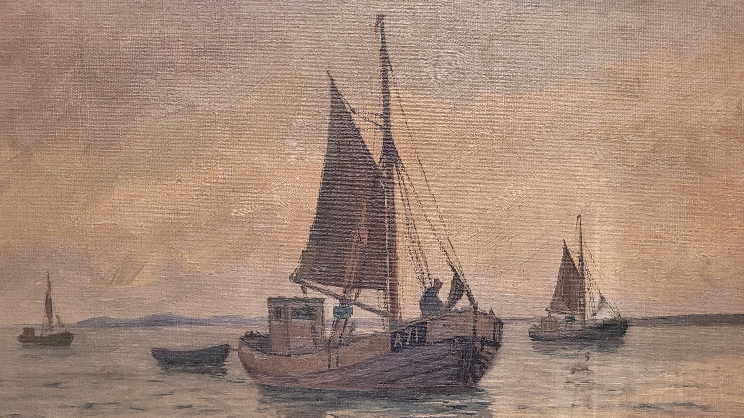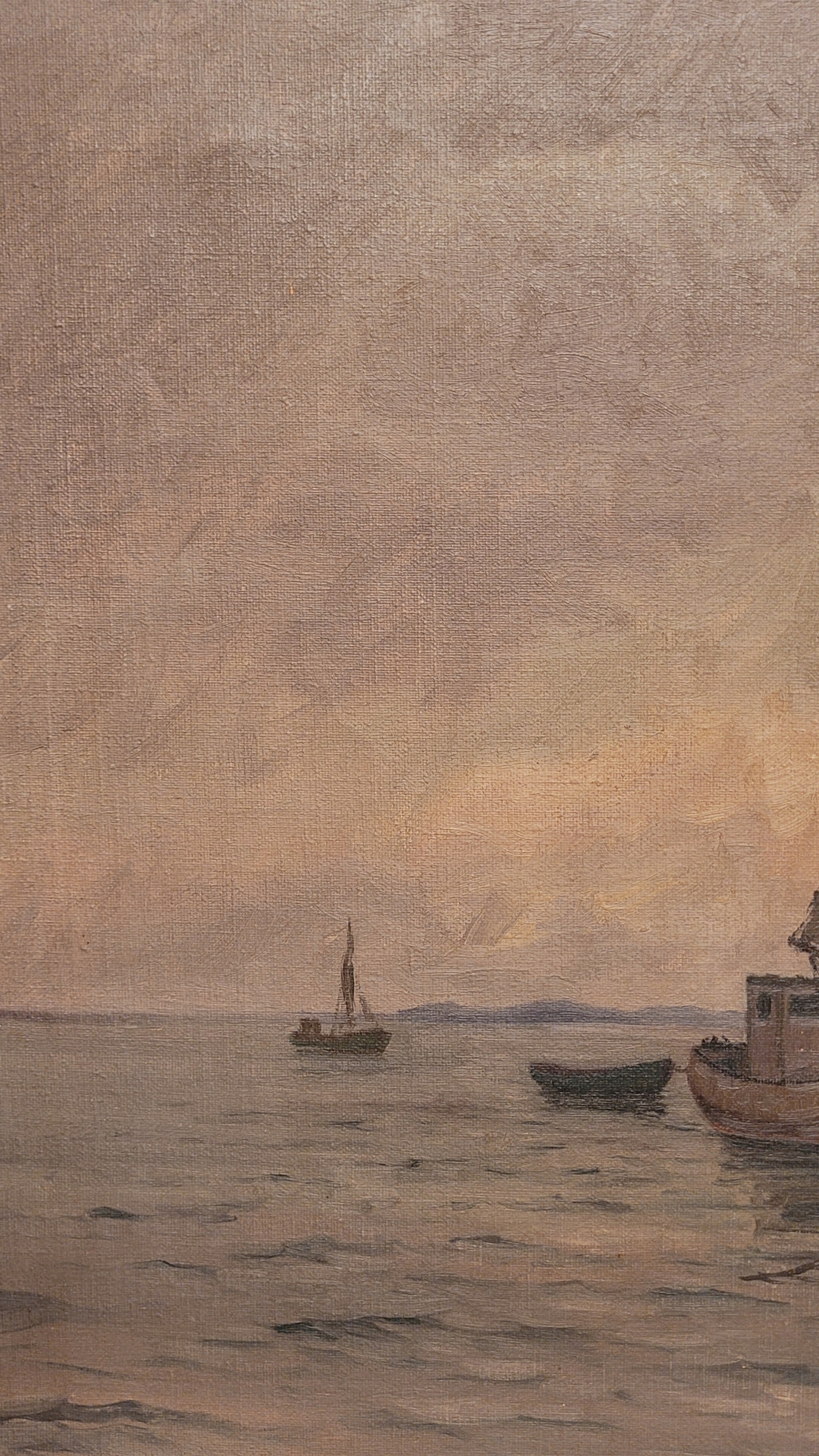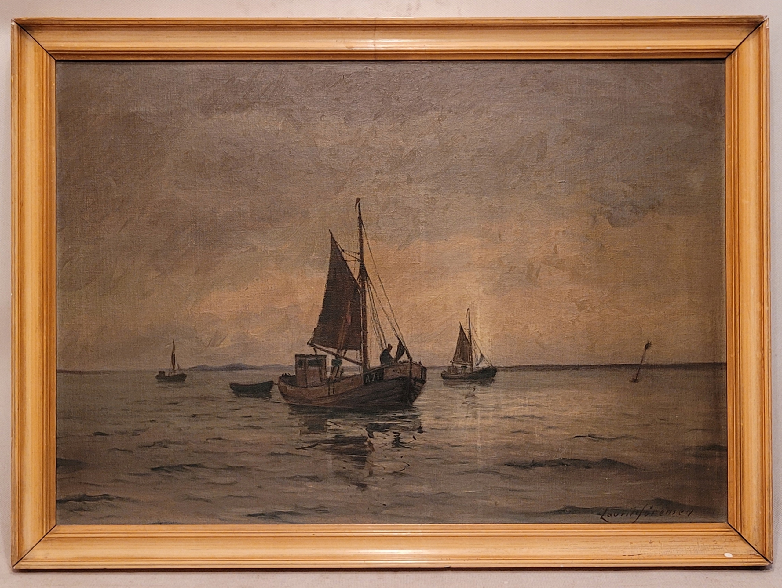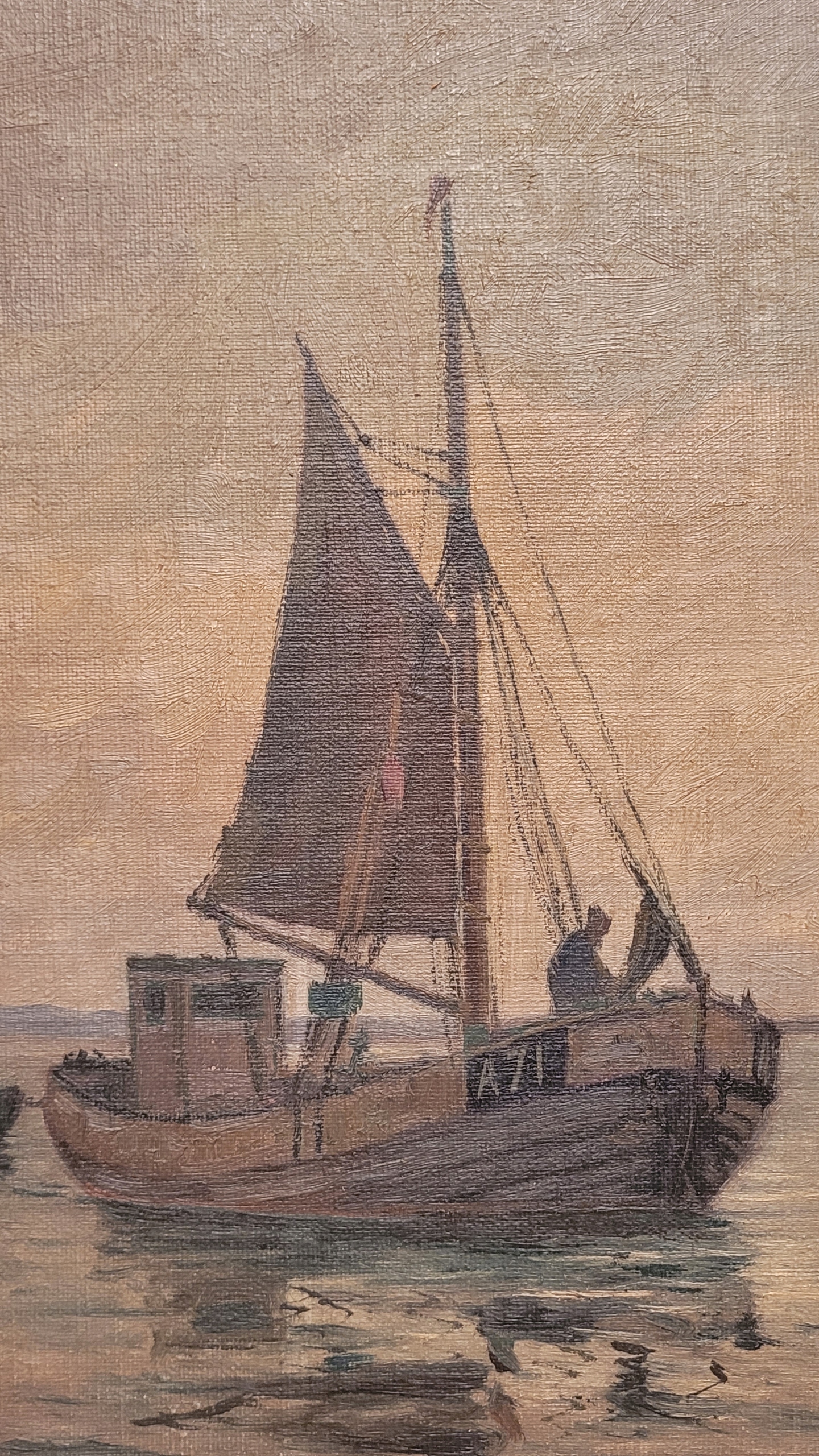 ЛАУРИТЦ СОРЕНСЕН (1882 -1968) - «РЫБАКСКАЯ ЛОДКА A71», старая картина маслом.