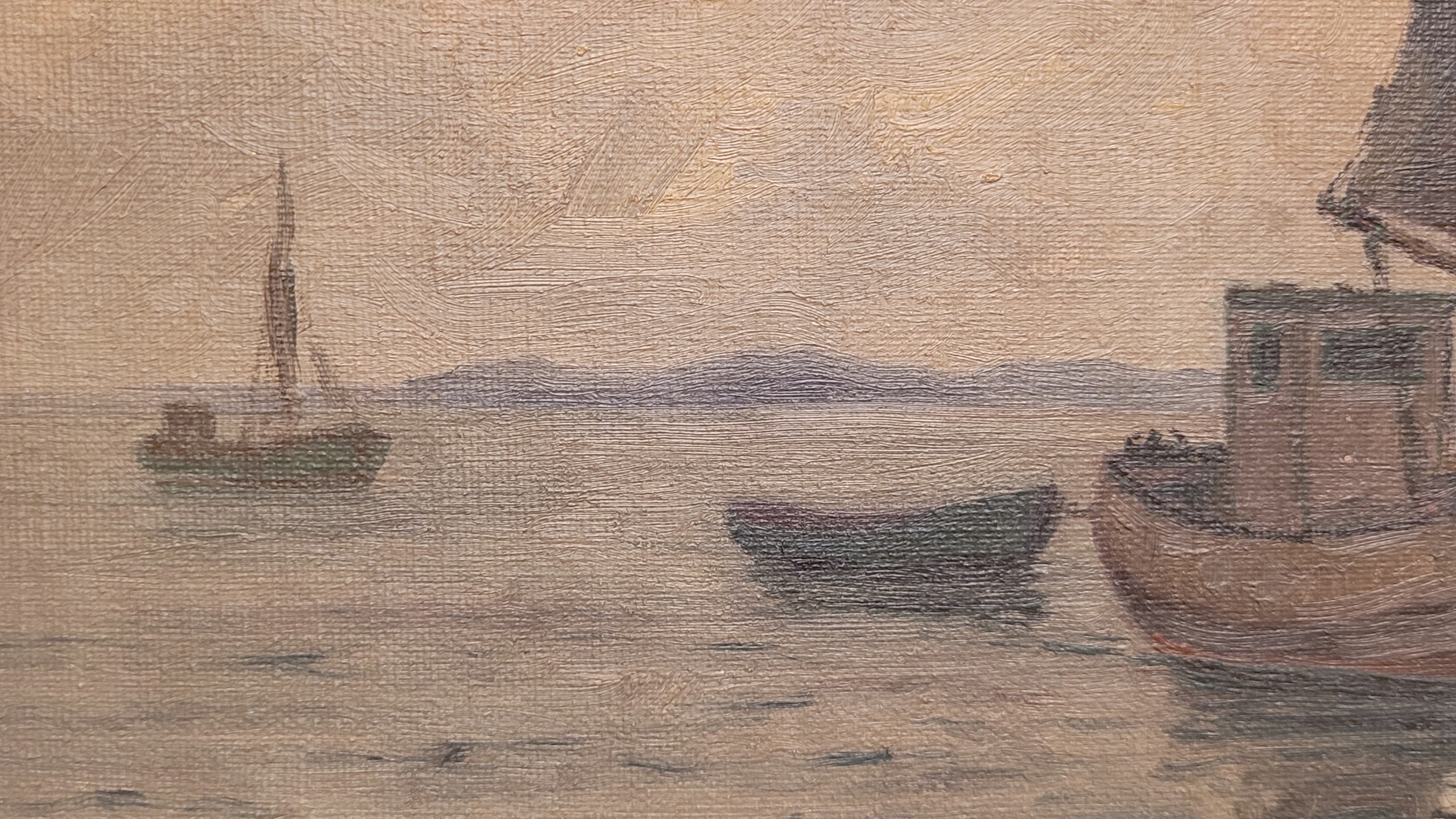 Предмет продажи - красивая, старинная картина маслом "РЫБАКСКАЯ ЛОДКА А71".