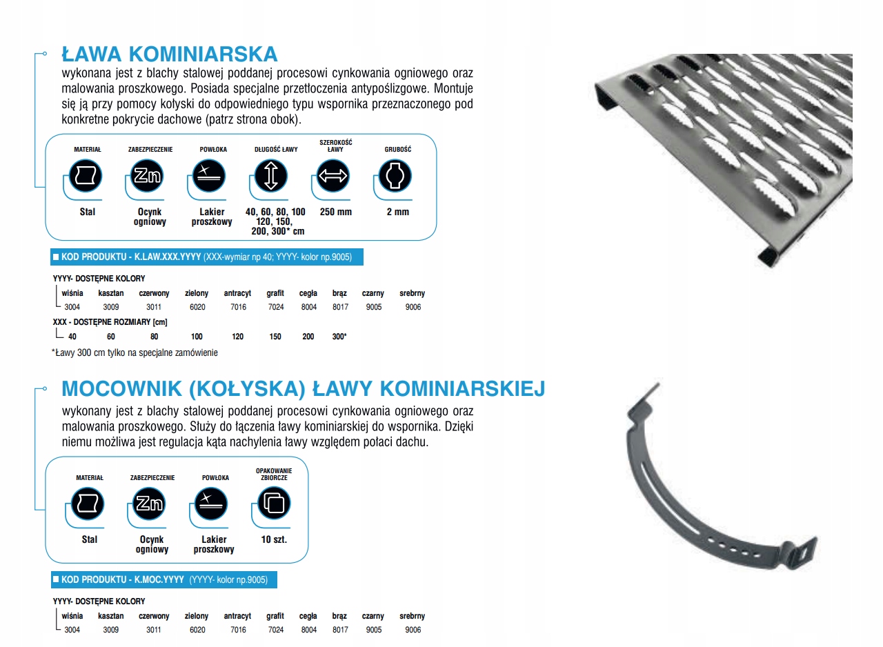 Скамейка трубочиста TECTO с двумя кронштейнами типа ЛН1 для металлочерепицы -состоит из: платформы, двух кронштейнов под конкретное кровельное покрытие, двух крепежных элементов и набора крепежных винтов. Благодаря ему можно безопасно и удобно передвигаться по скатной поверхности крыши. Это значительно облегчит доступ к дымоходным устройствам или антеннам. Противоскользящее тиснение и специальное углубление, служащее ручкой, облегчают перемещение между уровнями. Кроме того, листовой металл защищен цинковым покрытием и покрыт порошковой краской.