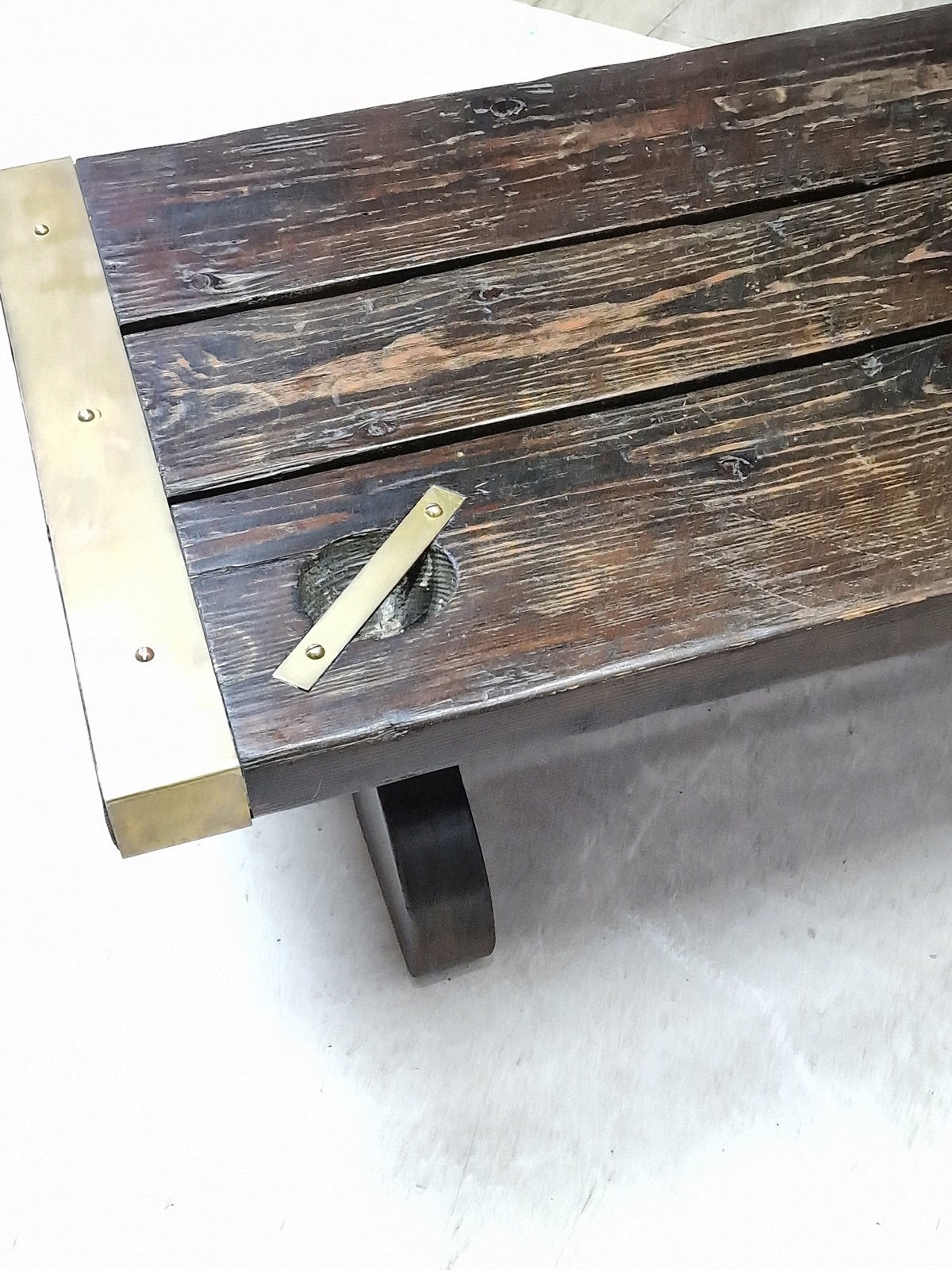 Фурнитура на скамье изготовлена из латуни.