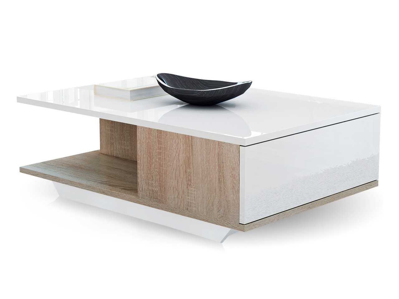 СКАМЬЯ ЖУРНАЛЬНЫЙ СТОЛИК АСПЕН БЕЛЫЙ ВЫСОКИЙ ГЛЯНЕЦ / СОНОМА ДУБ