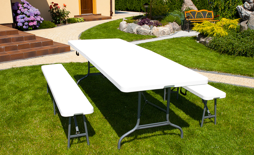 Складная скамейка для кейтеринга — идеальный выбор для людей, которые ценят простоту и функциональность. Идеально подходит для мероприятий на открытом воздухе, банкетных залов, ресторанов и отелей. Также идеально подходит для сада. Скамейка имеет практичную ручку, благодаря которой ее легко переносить, а в сложенном виде она занимает очень мало места. Металлический каркас гарантирует устойчивость. Сиденье из полипропилена, 100% водонепроницаемое. Изготовлен из материалов высочайшего качества. Устойчив к вредным погодным условиям.