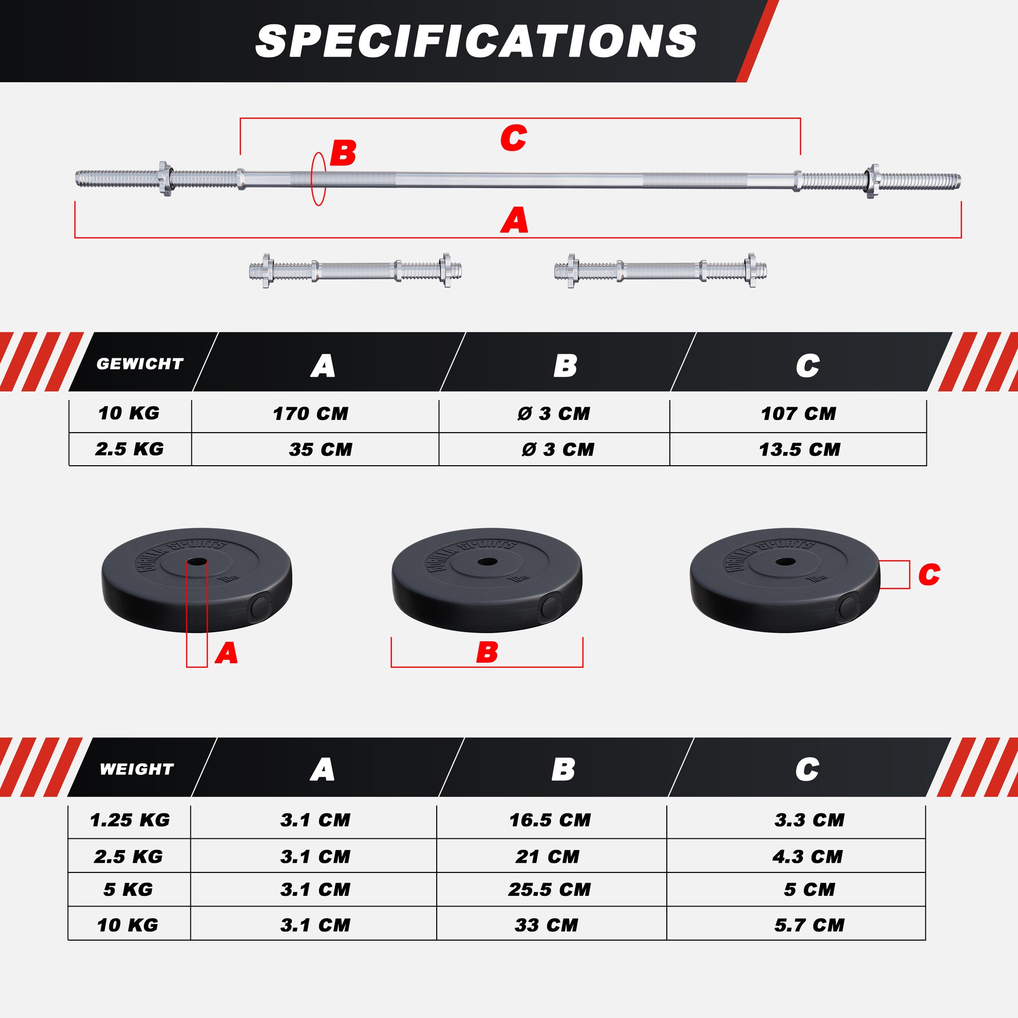- Прямая штанга 170 см – 10 кг, 30 мм