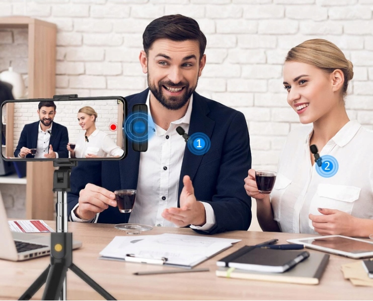 LAVALIER MICROPHONE БЕЗДРОТОВИЙ МІКРОФОН З ЗАЩИПКАМИ ДЛЯ ВЕДЕОБЛОГУ В ПРЯМОМУ ВІДЕО