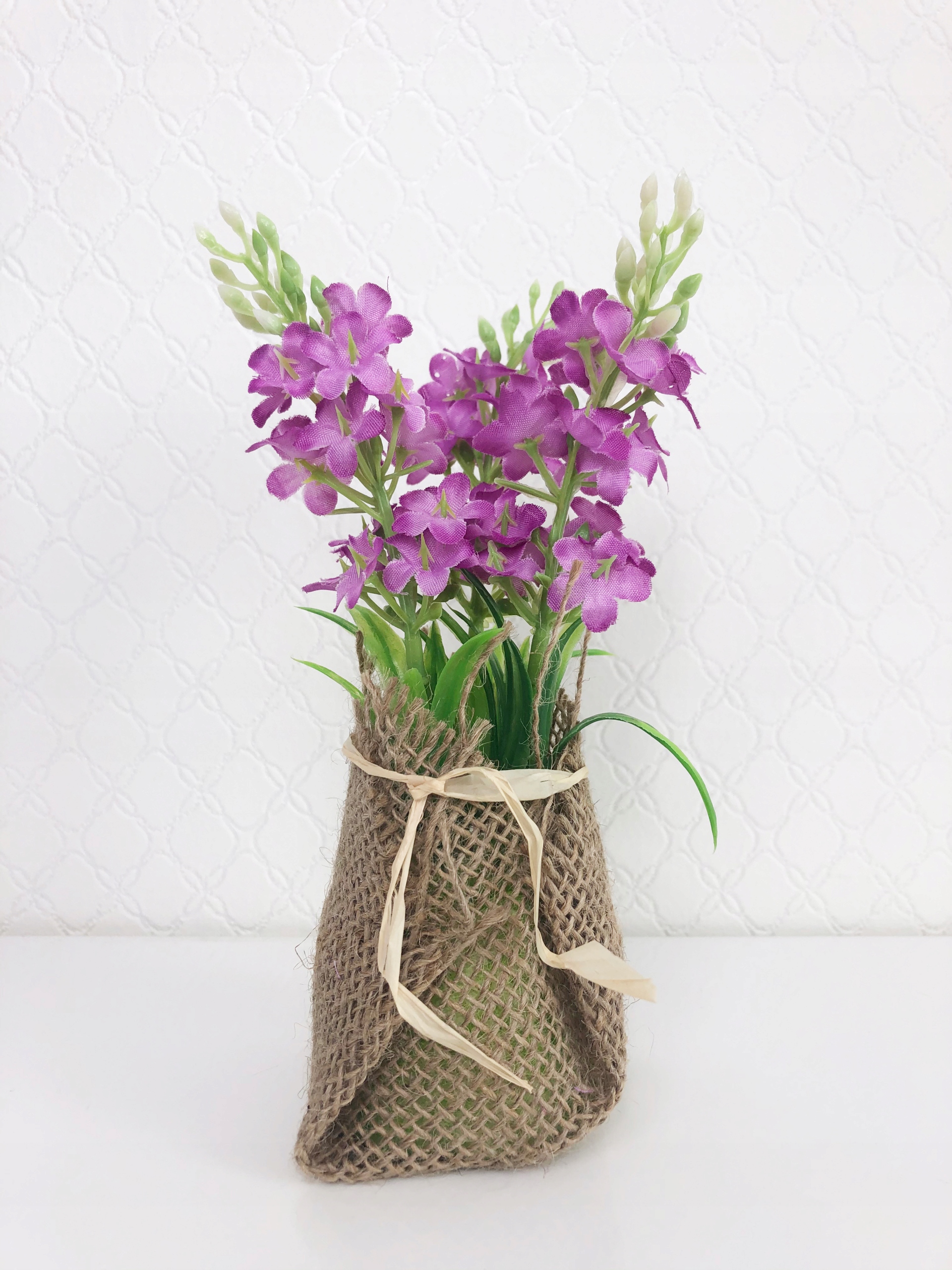 ЛАВАНДА В ДЖУТОВОМ МЕШКЕ искусственные цветы 20 см