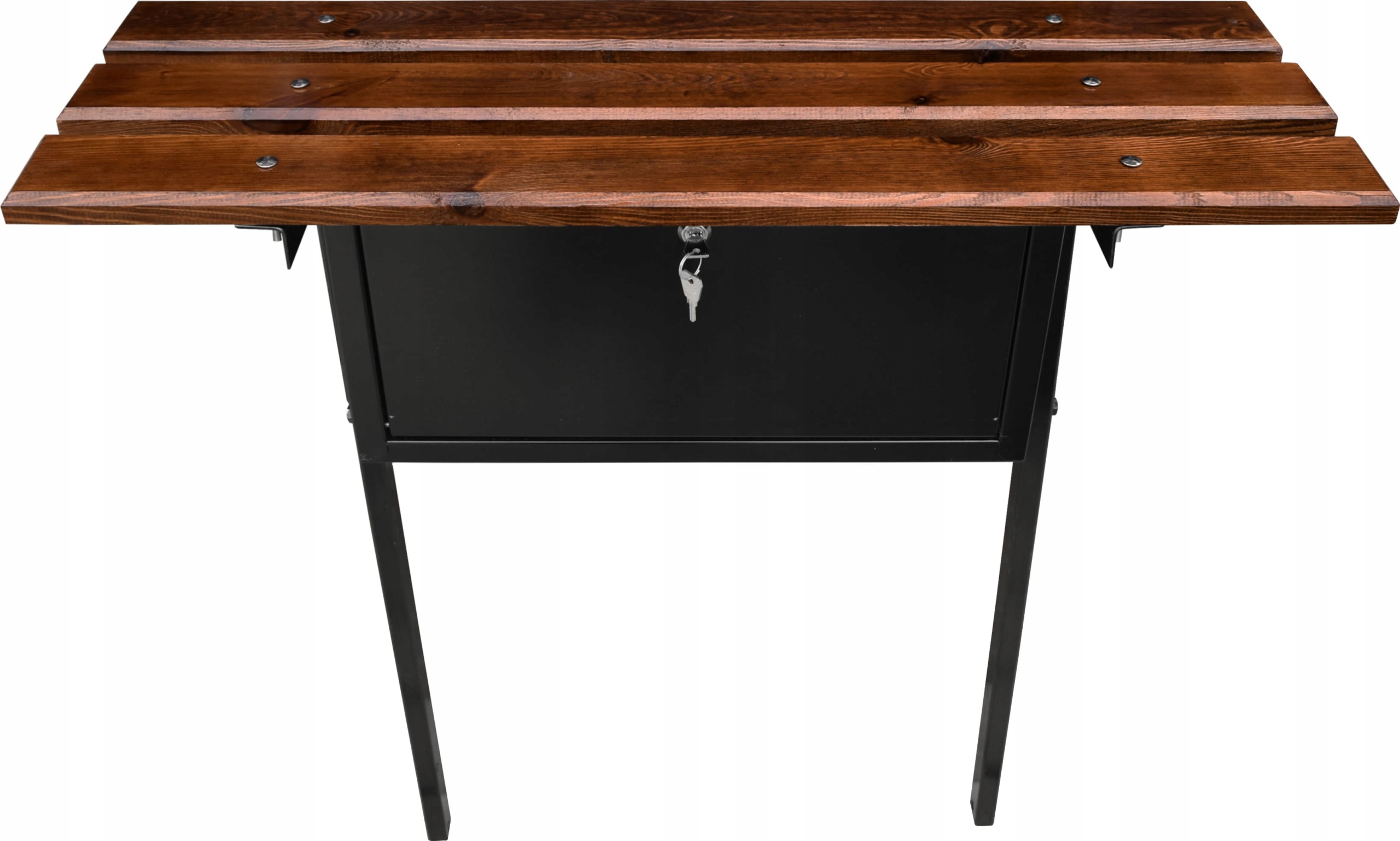 Металлический ящик, расположенный под сиденьем, также покрыт порошковой краской черного цвета. В коробке есть небольшие отверстия, чтобы в ней не скапливалась вода.