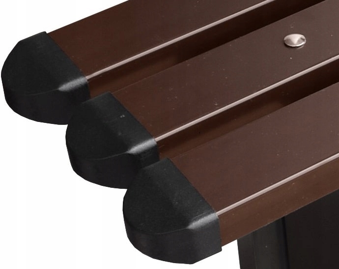 Сиденье из темно-коричневых полос ПВХ-пластика, отделанное черными колпаками.