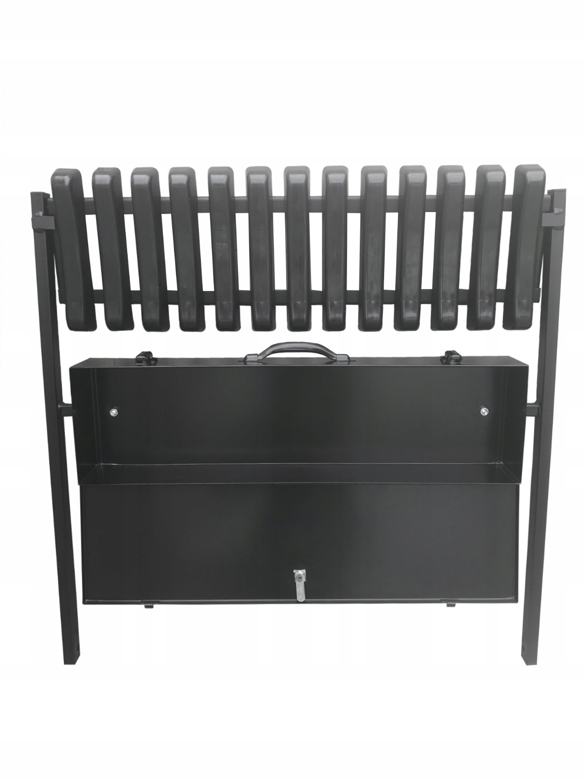 Если у вас очень мало места рядом с надгробием и вы хотите иметь складную скамейку с ящиком под ней, это лучшее решение на рынке. Скамейка и ящик в сложенном виде занимают очень мало места – всего 10 см. .Скамейка длиной 82 см, на ней легко могут разместиться 2 человека.Ящик очень вместительный, вмещает несколько свечных вкладышей и основные инструменты для чистки надгробия (его размеры указаны ниже).В комплект входит навесной замок.