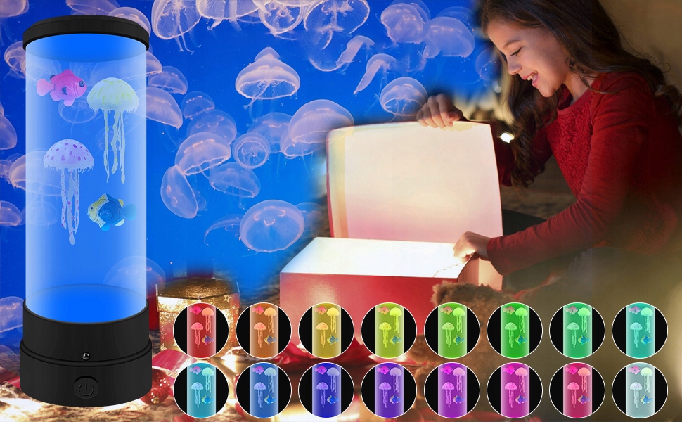 - ✅【Модный свет для релаксации】Медуза Лавовая лампа с 17 цветами света и 4 световыми эффектами стимулирует ваше воображение и привносит в ваш дом очарование настоящего красочного морского сенсорного света. Добавьте уникальный ночник с морским аквариумом к декору вашего офисного стола и помогите снять стресс и беспокойство. Идеально подходит для украшения вашей детской комнаты, гостиной, прикроватной тумбочки, офиса или любого места в вашем доме.