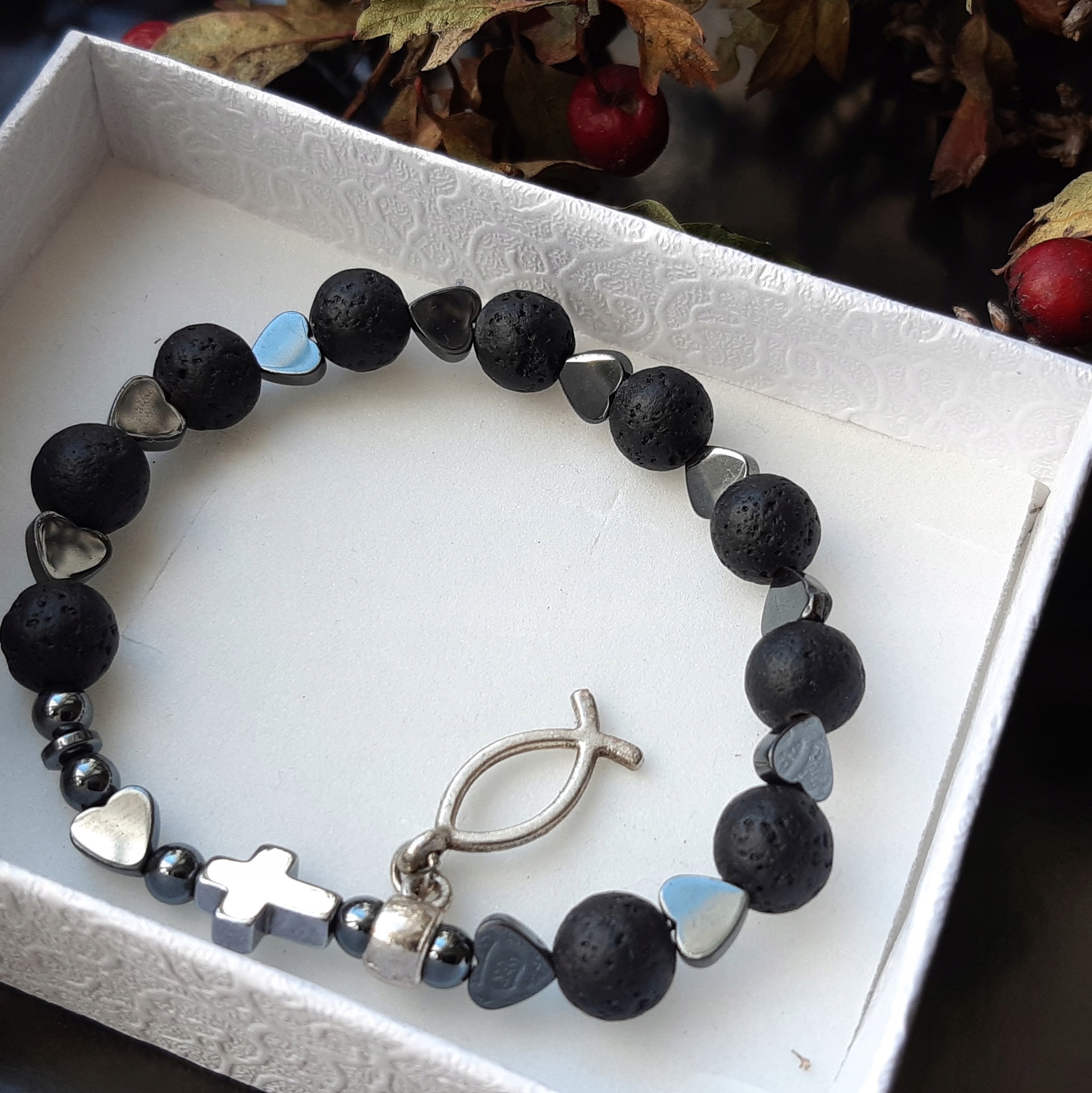 Чётки - Браслет ручной работы по нашему дизайну с полудрагоценными камнямиВулканическая лава(8 мм),