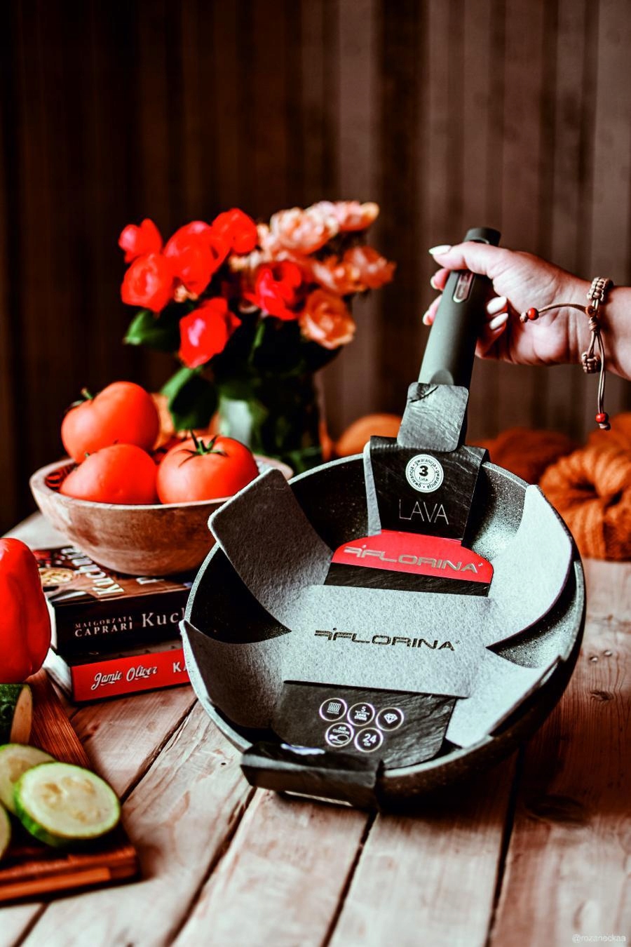 Современная сковорода Lava Stone диаметром 28 см прочная и очень прочная. Он изготовлен из лучшего сырья - внутри имеется 5-слойное покрытие типа Lava Stone, повышающее его устойчивость к износу и внешним факторам в пять раз. Благодаря минералам, содержащимся внутри покрытия, вы можете приготовить любимые блюда, используя всего несколько капель жира. Благодаря этому вы заново откроете для себя свою кухню, создавая полезные и ароматные блюда.