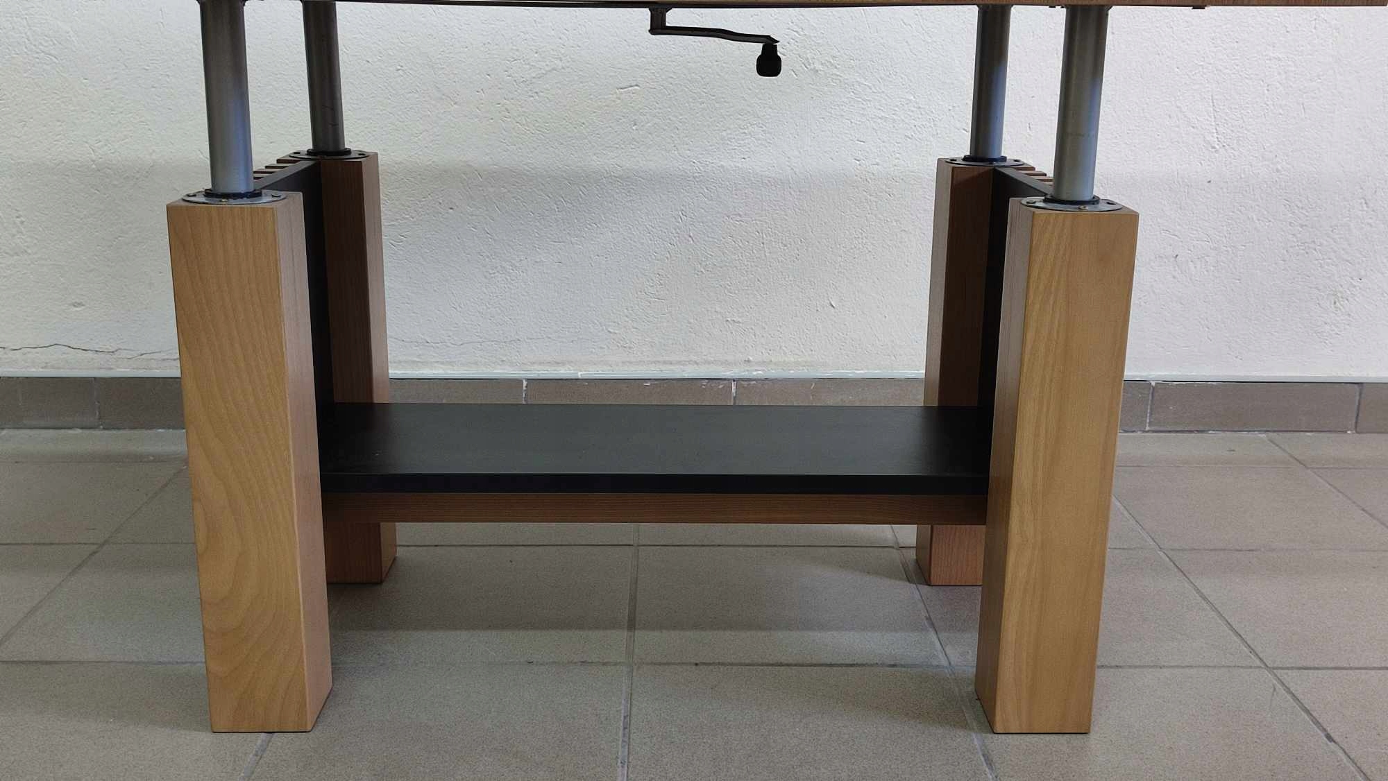 топ и рама под шариком, изготовленной из ламинированной мебельной пластины. h2> ноги (EW lamele) и объединение ног из дерева. h2>