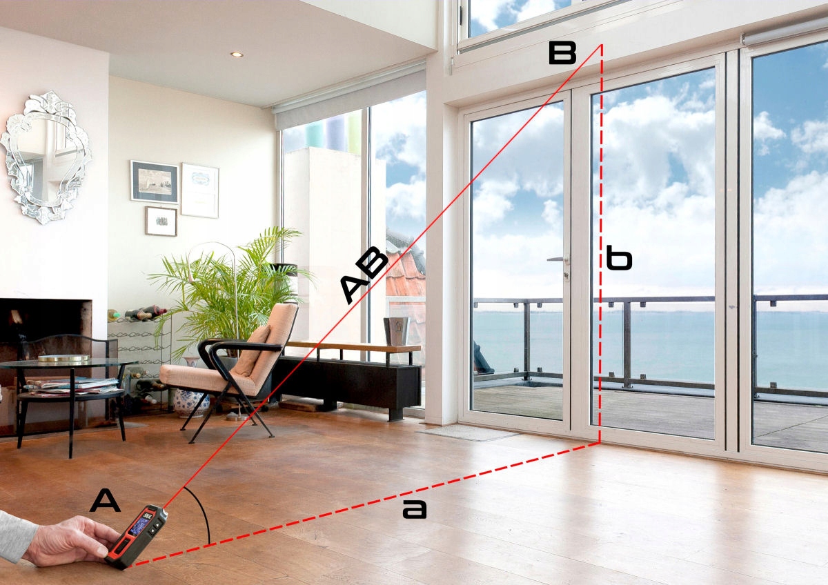 Этот режим позволяет быстро определить длину и высоту косвенно, используя только одно измерение, и особенно полезен, когда нам нужно определить расстояния, которые мы не можем определить. измерение из-за препятствия или отсутствия целевой поверхности.