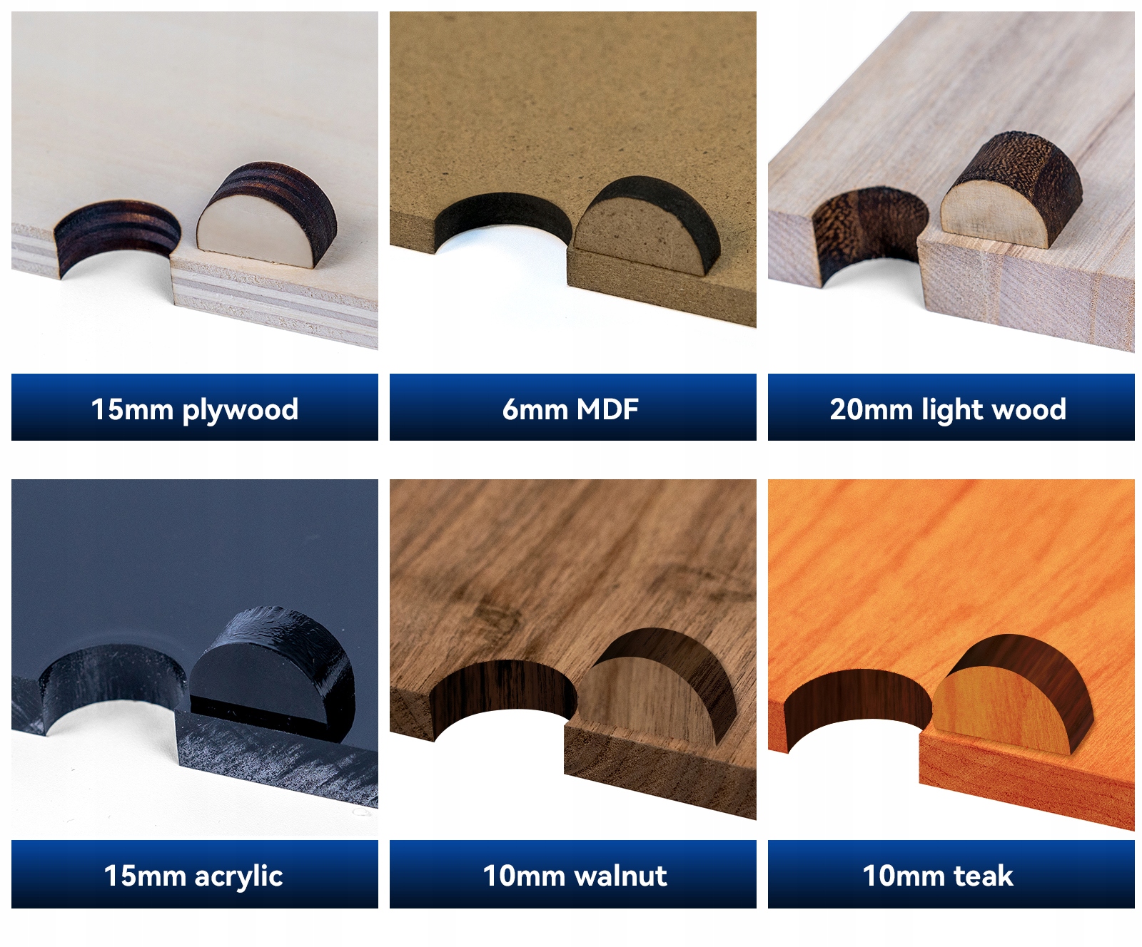 В сочетании с расширенной, быстрой пневматической поддержкой и большей плотностью лазера 10 Вт, S10 показывает сопоставимую эффективность резки промышленного класса древесины: во -первых, резкая способность значительно улучшается, а скорость резания выше; Во -вторых, проникновение резки является сильнее и может сократить многие виды древесины с высокой плотностью.