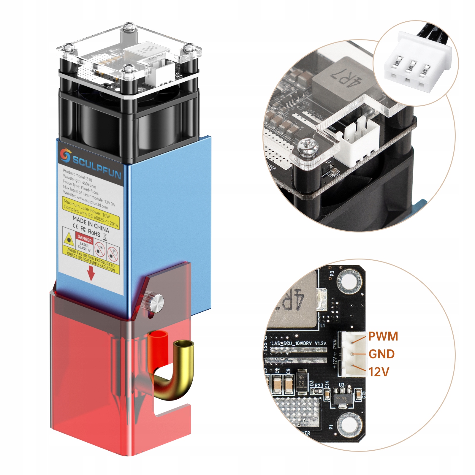 Лазерный модуль SCULPFUN S10 с высокоскоростной лазерной головкой с воздушным соплом