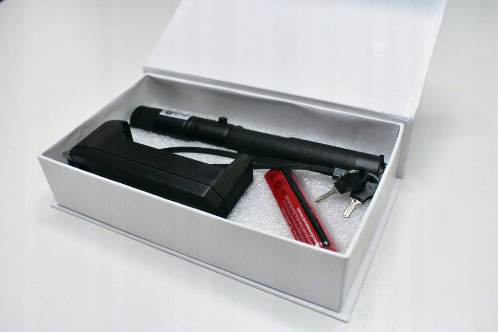 Это предложение включает весь комплект, включая очень мощный лазер, оснащенный головкой DISCO, ключом b> , аккумулятор и зарядное устройство, подходящие для розеток в Польше.