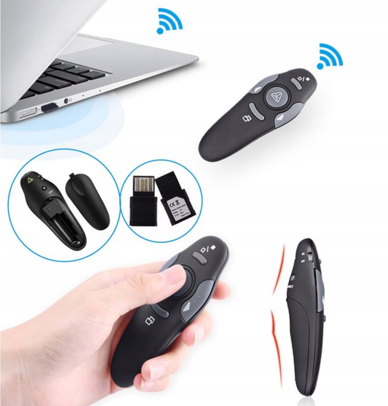 Красный лазер позволит свободно указывать на самые важные элементы презентации на максимальном расстоянии 200 метров. Кнопки позволяют переключать слайды вперед и назад, отключать экран или выключите устройство. Устройство имеет радиус действия до 15 метров.