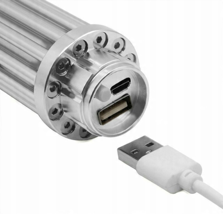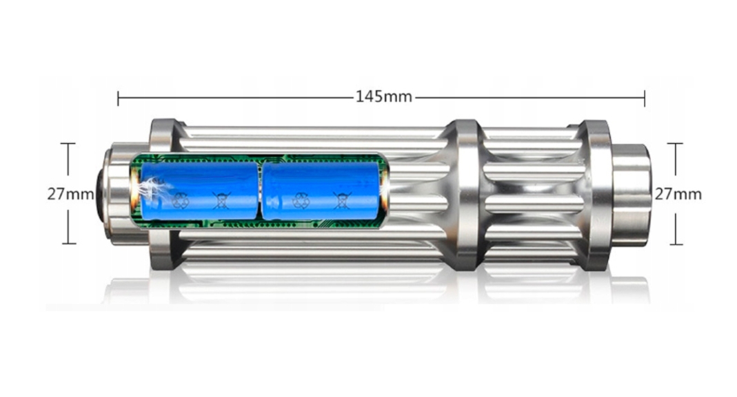 Лазер питается от двух встроенных аккумуляторов 16340 мощностью 1400мАч и напряжением 3,7В