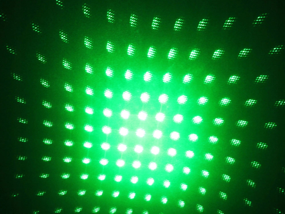 После отвинчивания колпачка лазер светит сфокусированным луч зеленого света.