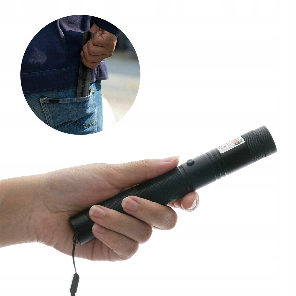 Зеленый лазер 303 изготовлен из авиационного алюминиевого сплава, устойчивого к сдавливанию и нагрузкам. Его поверхность имеет противоскользящую структуру. Кроме того, он оснащен блокировкой, которая предотвращает его включение посторонними лицами, например, ребенком.