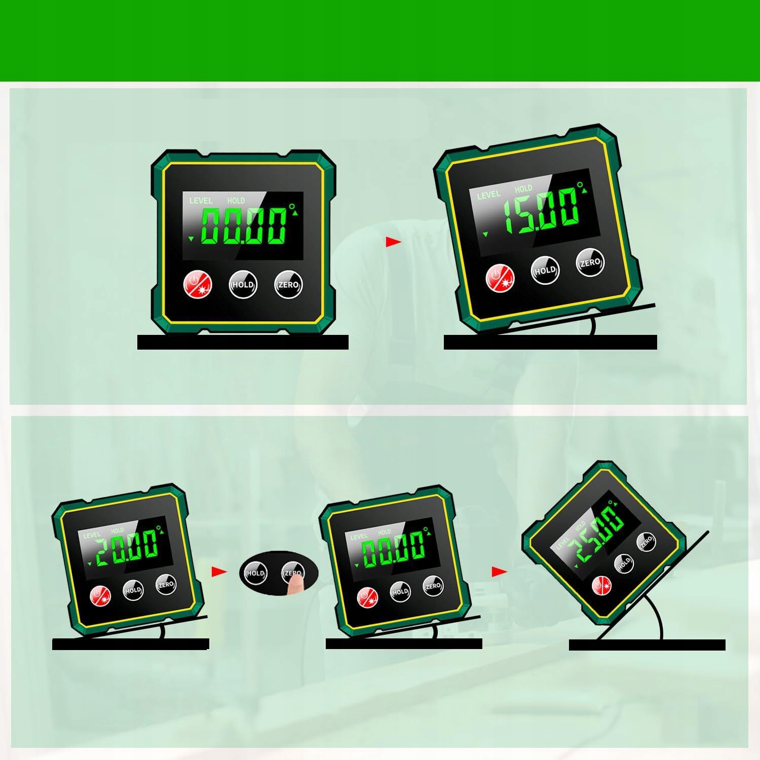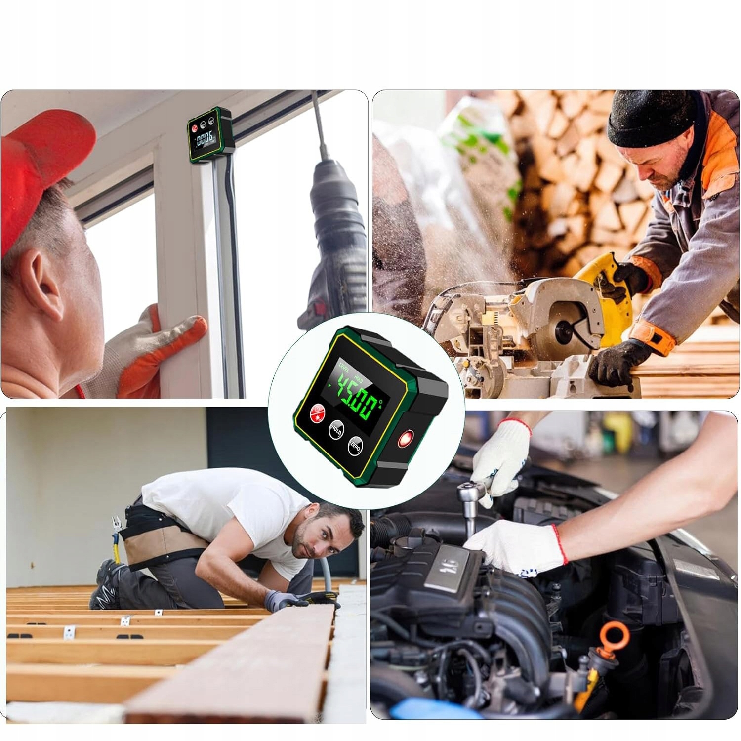 ✔️Точное измерение угла:Цифровой транспортир — идеально подходит для точных резов под углом и точного контроля угла. Просто поместите устройство на плоскую поверхность, например на стол пилы, а затем прикрепите его к пильному полотну с помощью магнитного основания, чтобы выполнить точные пропилы под углом.
